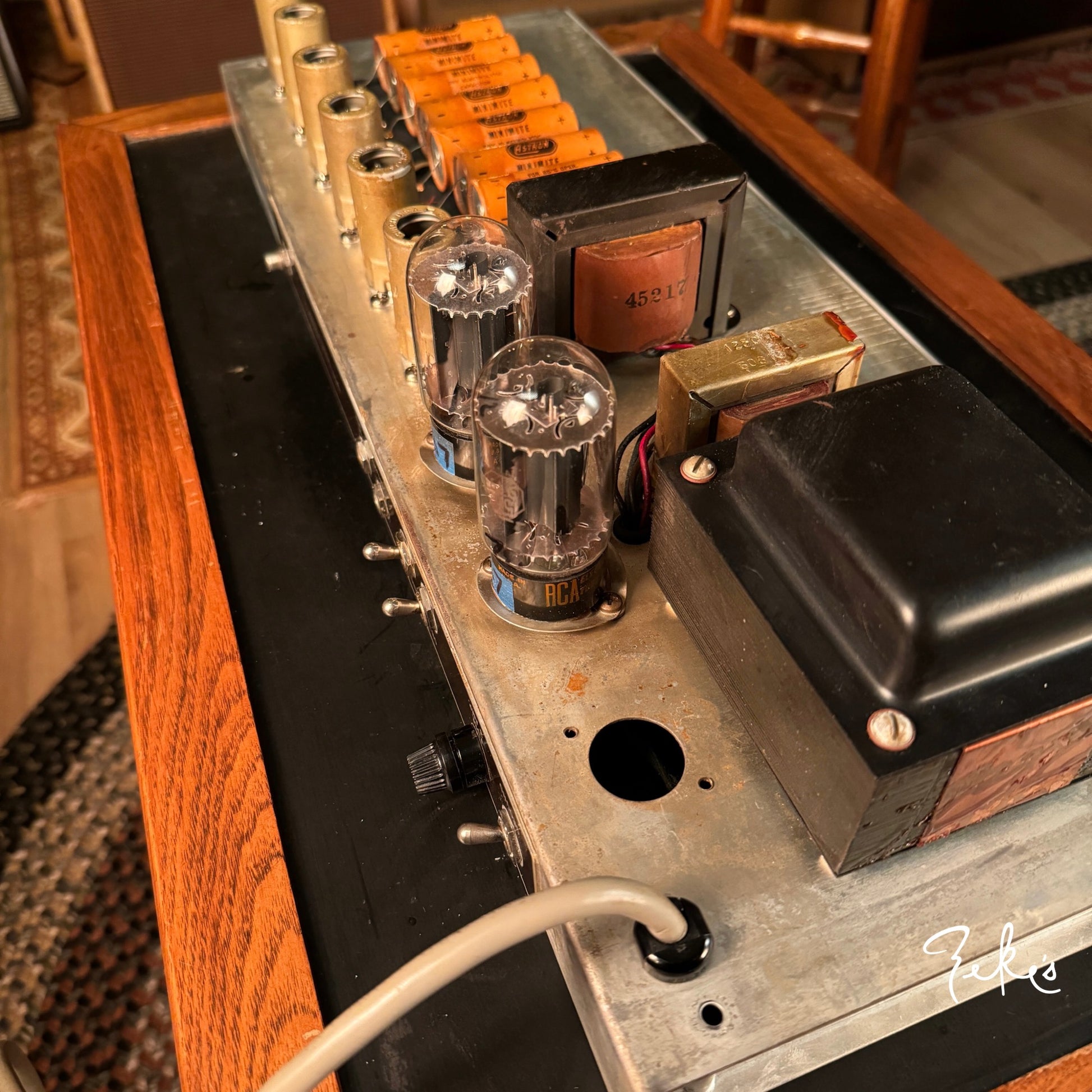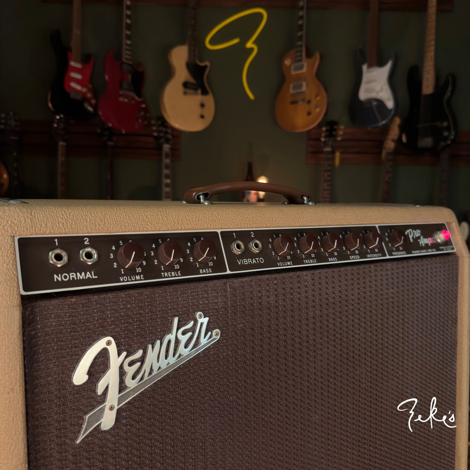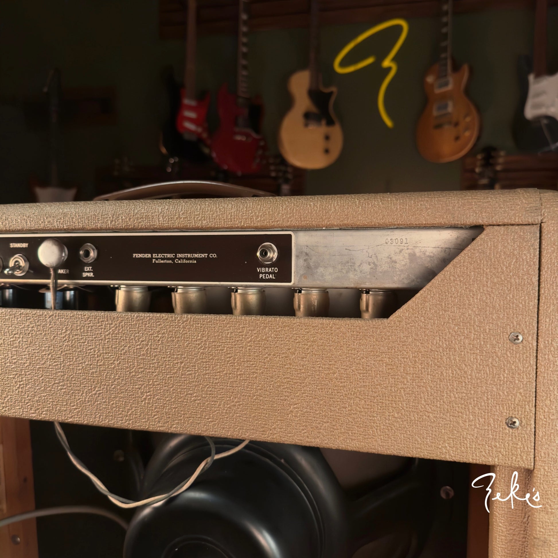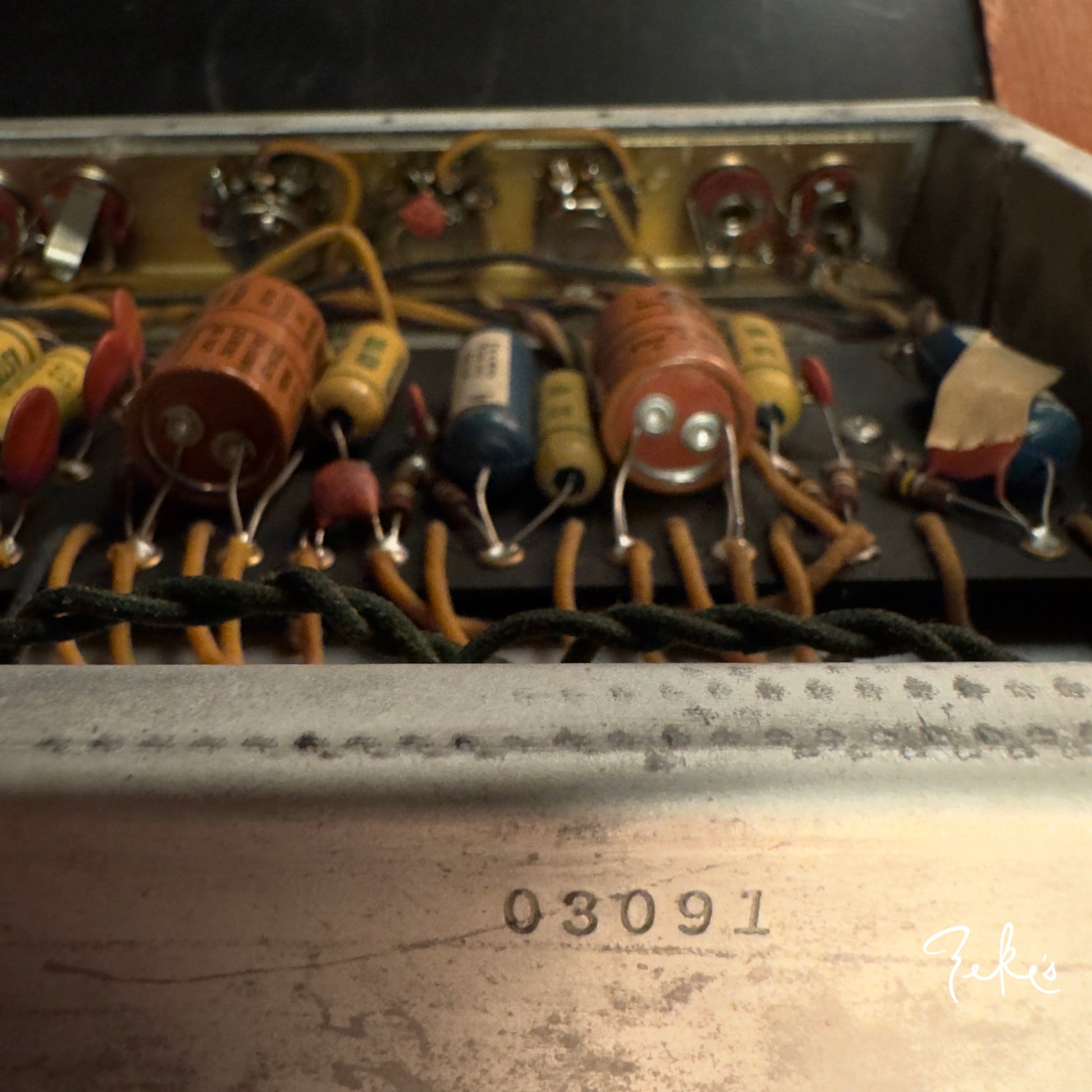 Here's an extremely clean 1961 Fender Pro Amp loaded with all RCA black plate tubes. The 15" vintage Jensen is period correct, original cone and is in mint condition. The circuit components appear to be untouched. The amp sounds fantastic and has the very desirable harmonic vibrato effect alla "Joey Landreth"
