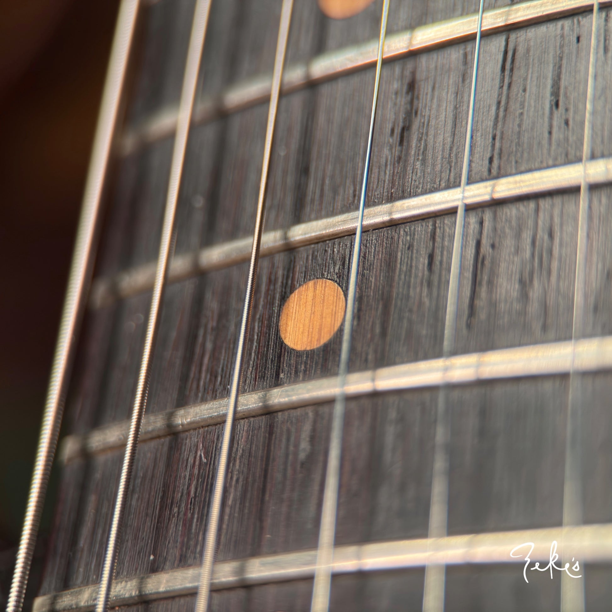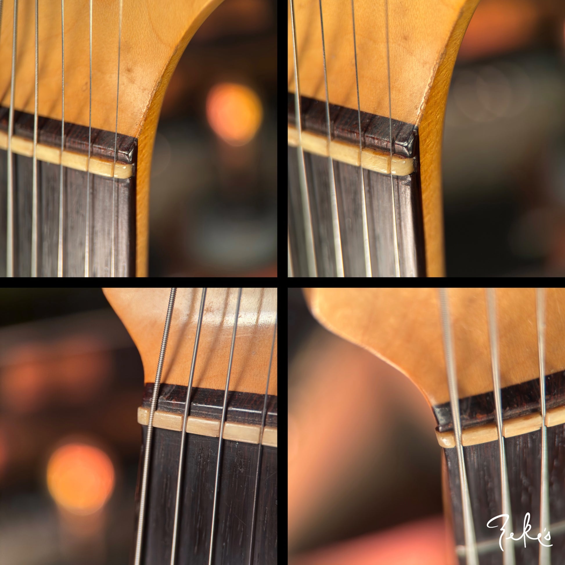 The frets have been well played in but evenly and still have a few miles on them. They may need some attention at some point especially if you are a big bender. However, it still plays and sounds great as is. The nut appears to be original but repositioned a little towards the low E side. (see pics) It's stable and plays great.