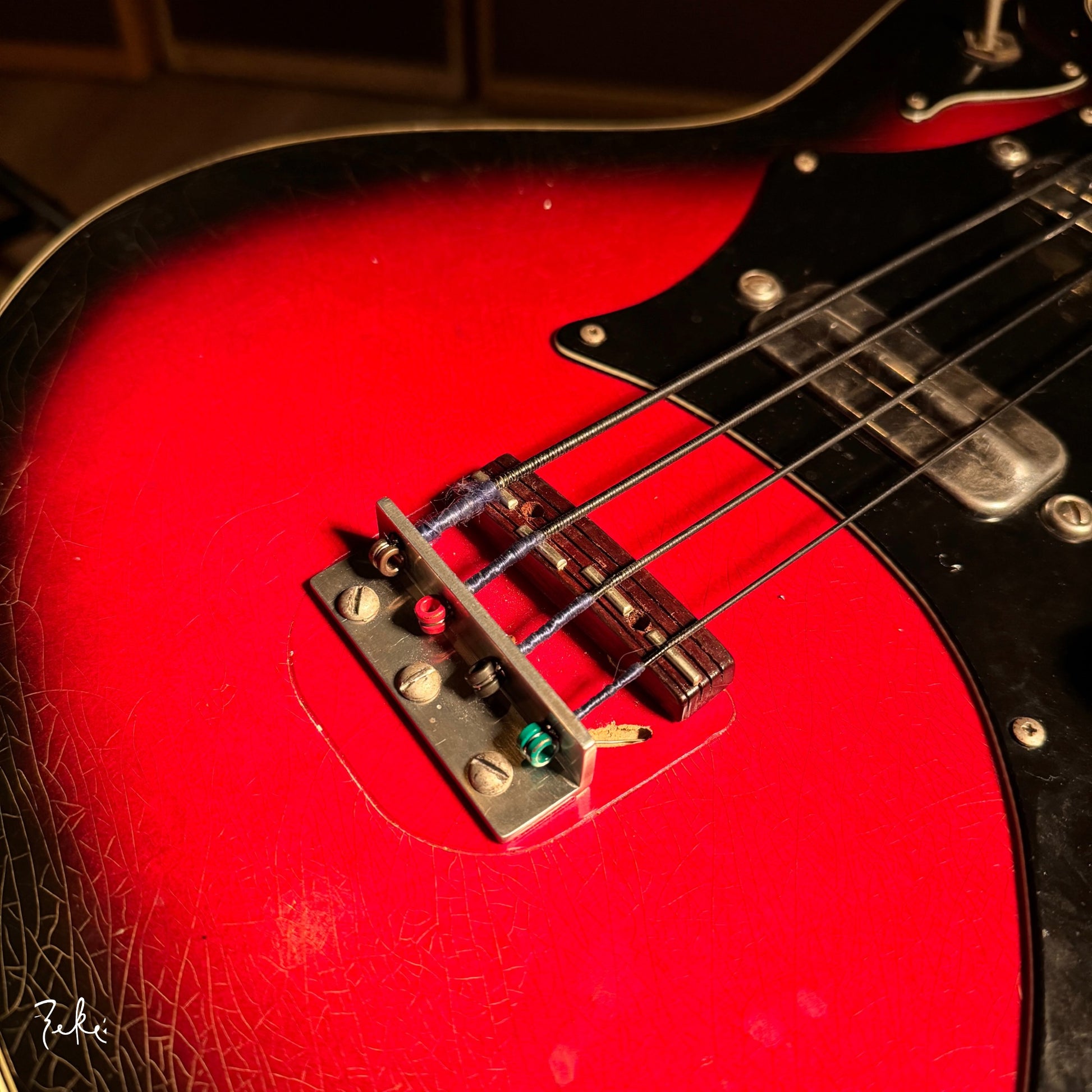 It is was re-wired here at Zeke’s like a J Bass with VIP 280 Pots. So what was once a switch selector is now a “Producer’s Switch”. (Props to Leland Sklar for that one). It really sounds better wired that way.