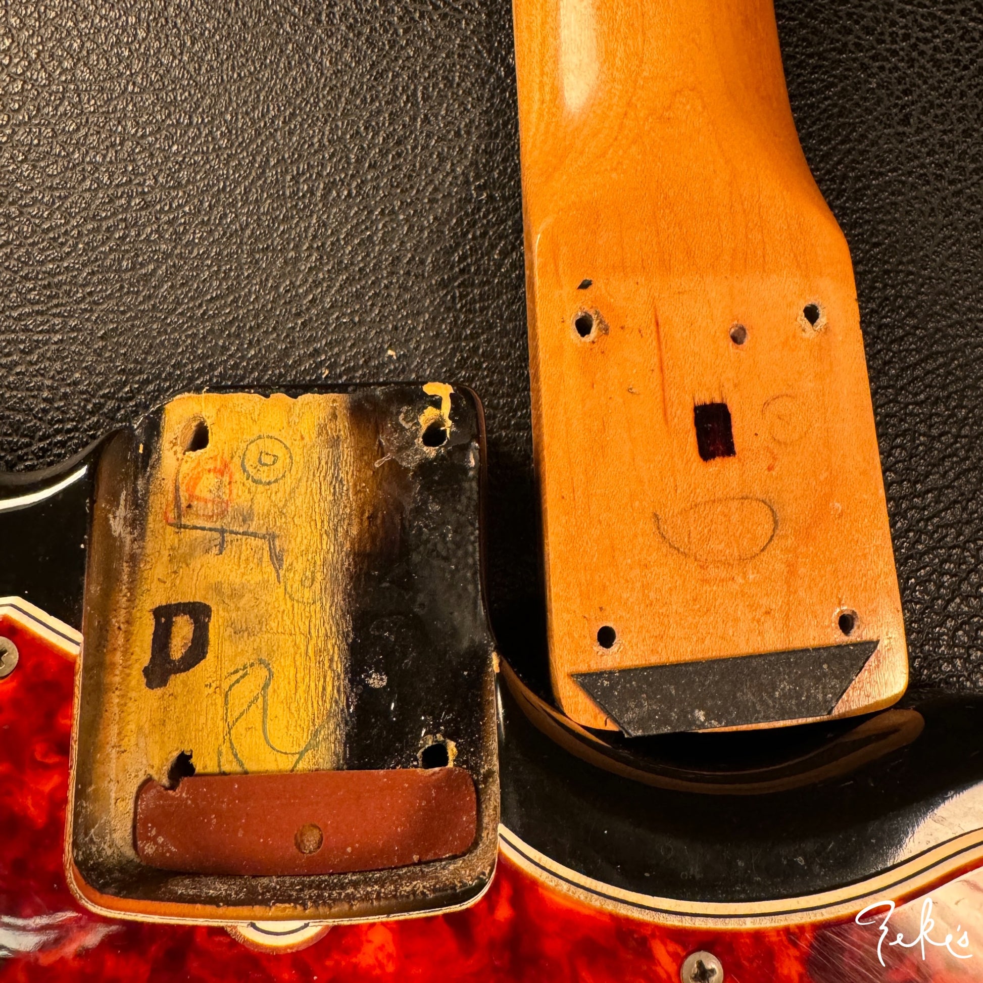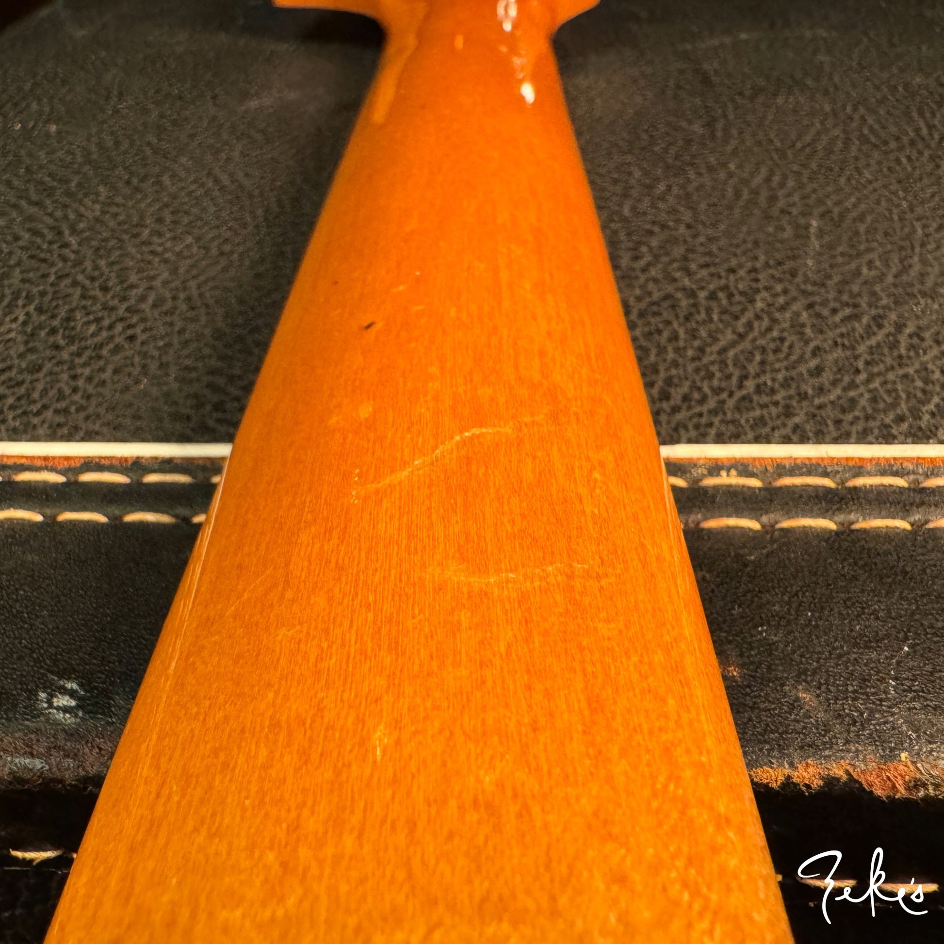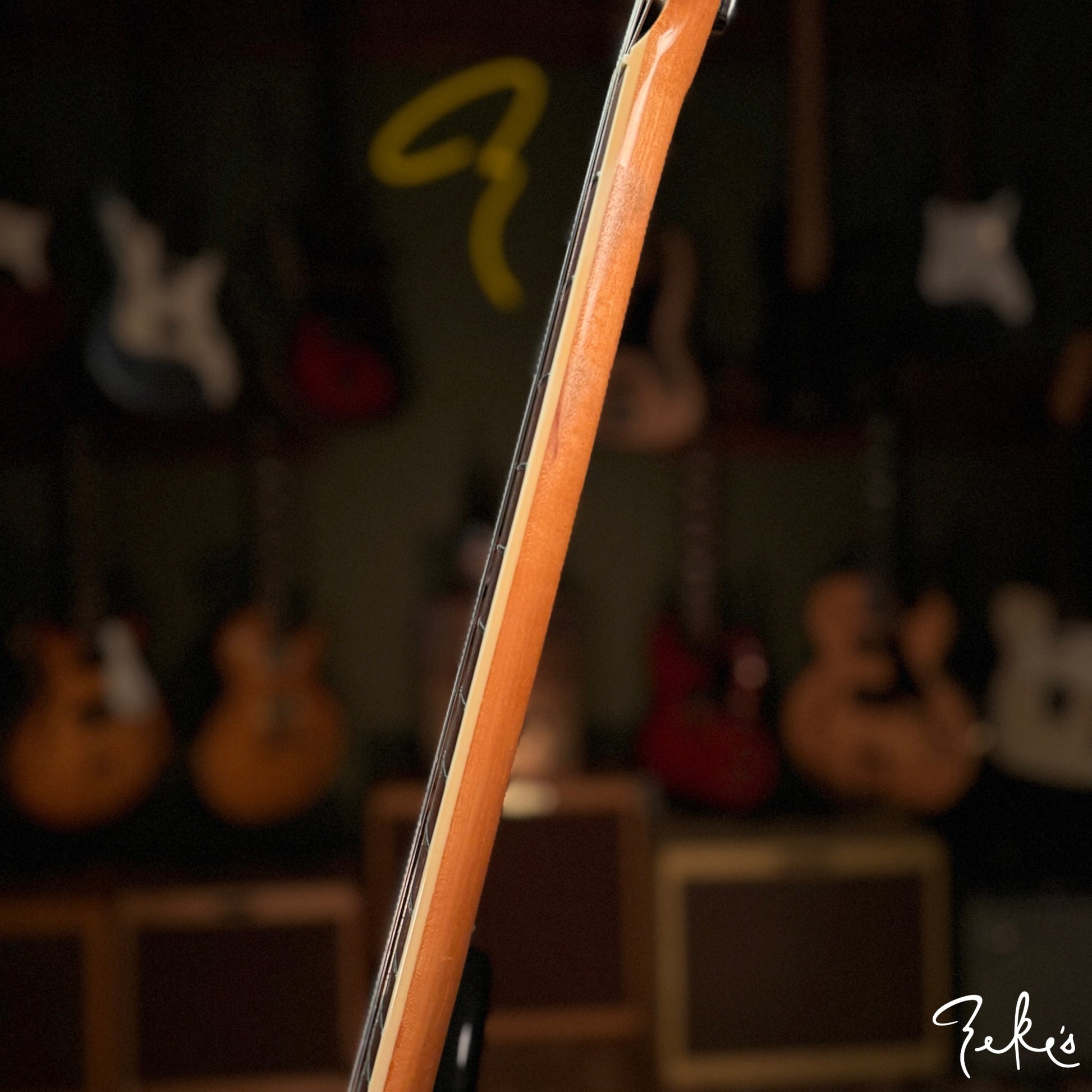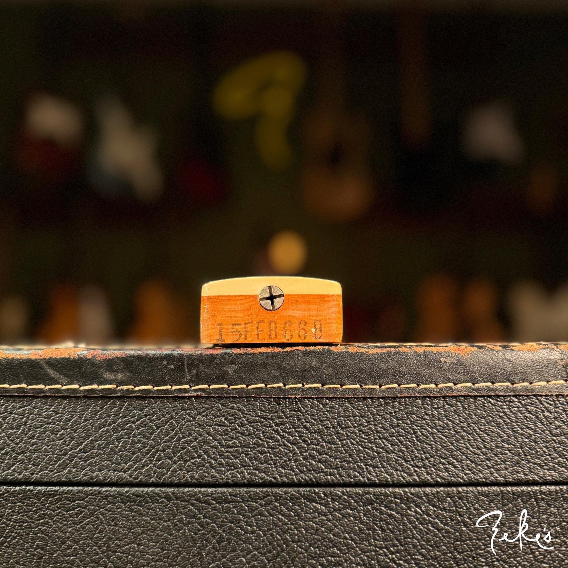 This one is completely original and in excellent condition. We're not sure, but perhaps the 5th and 12th dot markers...they look a little fancier than the others. No big deal though, right? One thing that is interesting is the bound neck with dots instead of blocks, which is typical of early 66.
