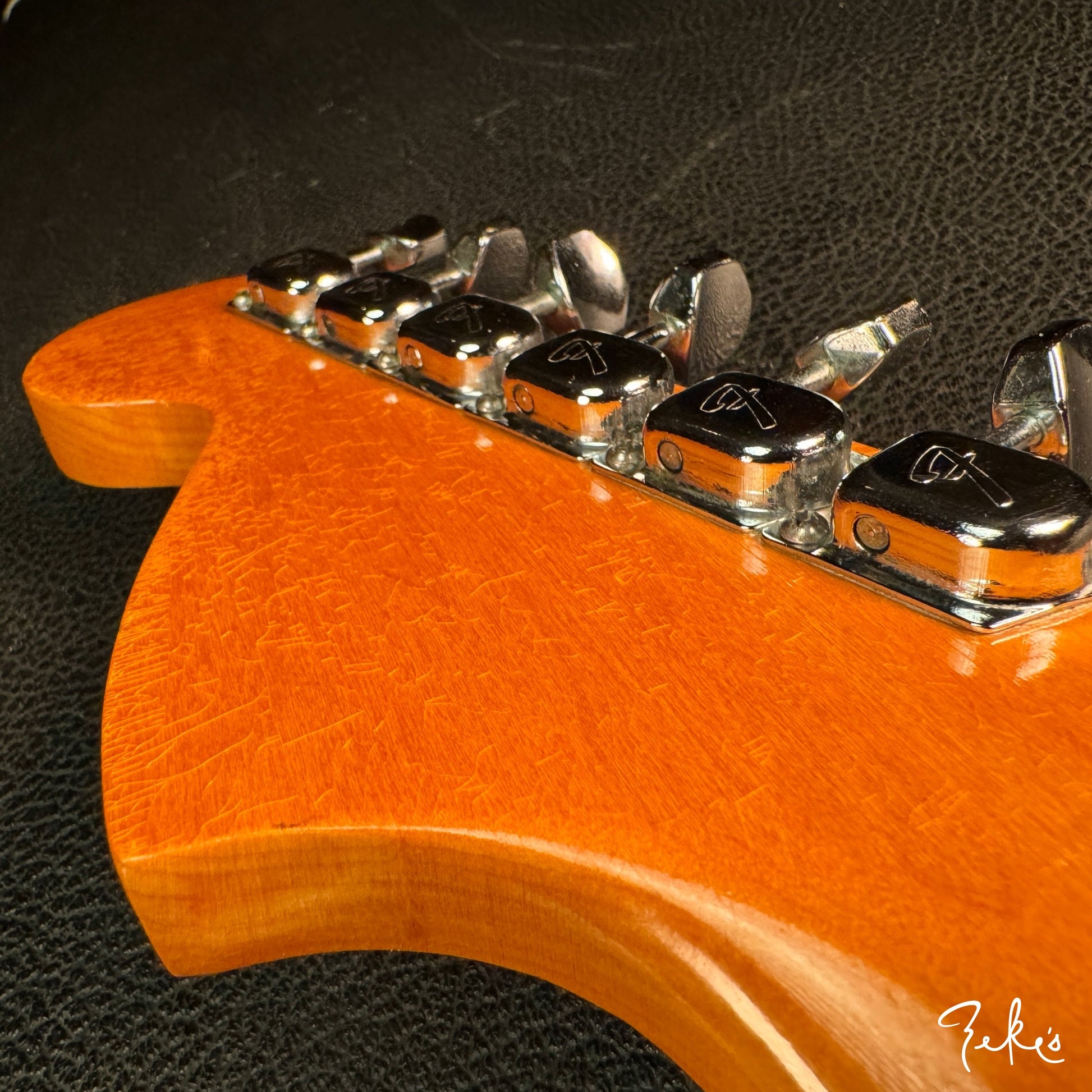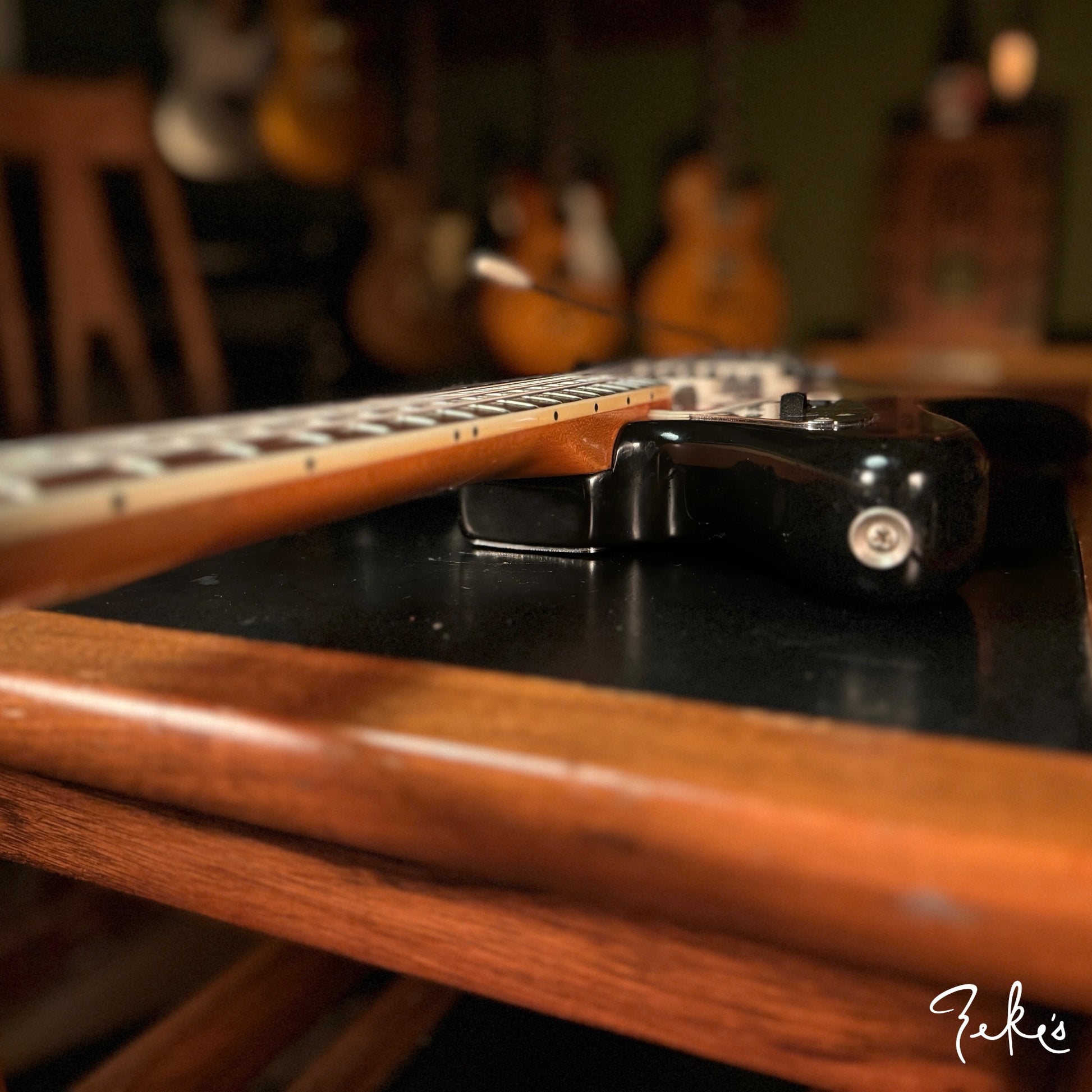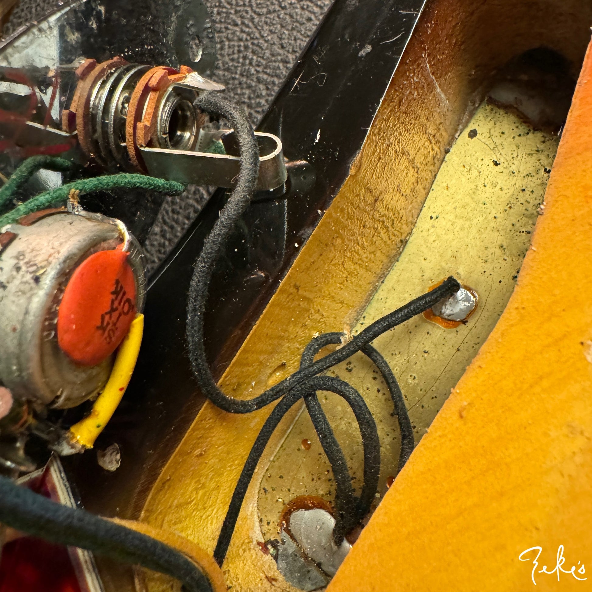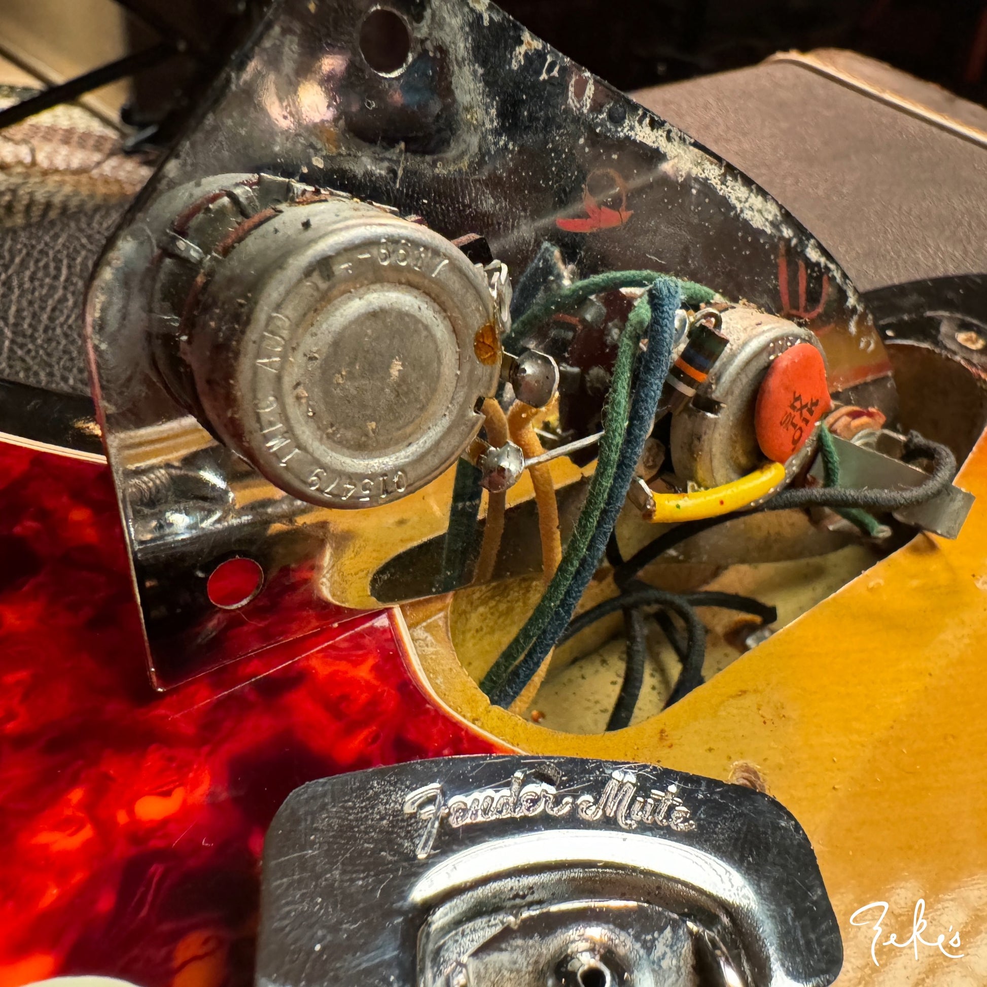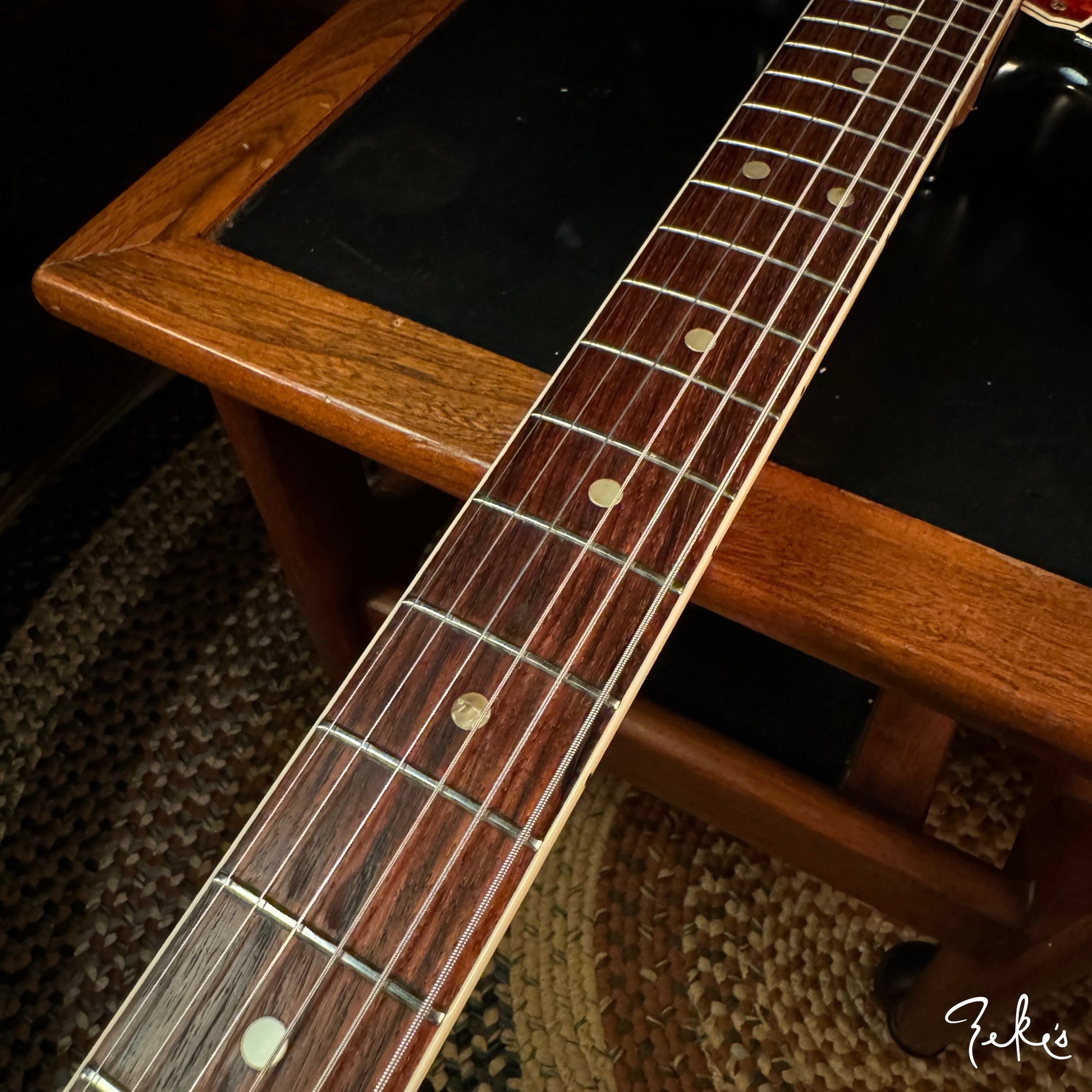 This one is completely original and in excellent condition. We're not sure, but perhaps the 5th and 12th dot markers...they look a little fancier than the others. No big deal though, right? One thing that is interesting is the bound neck with dots instead of blocks, which is typical of early 66.