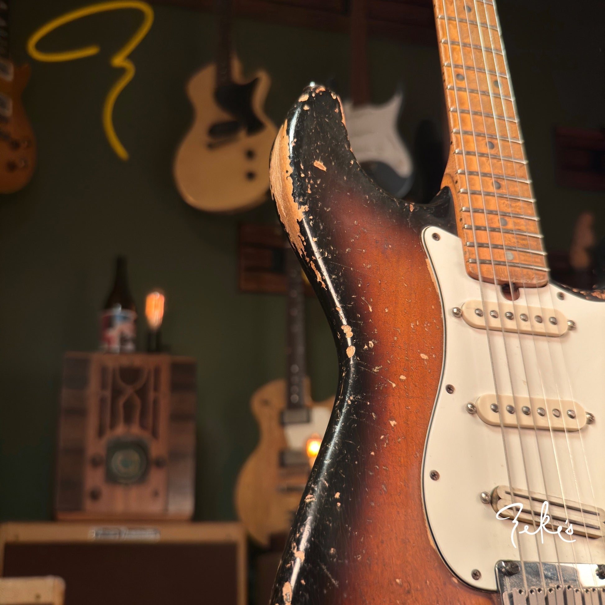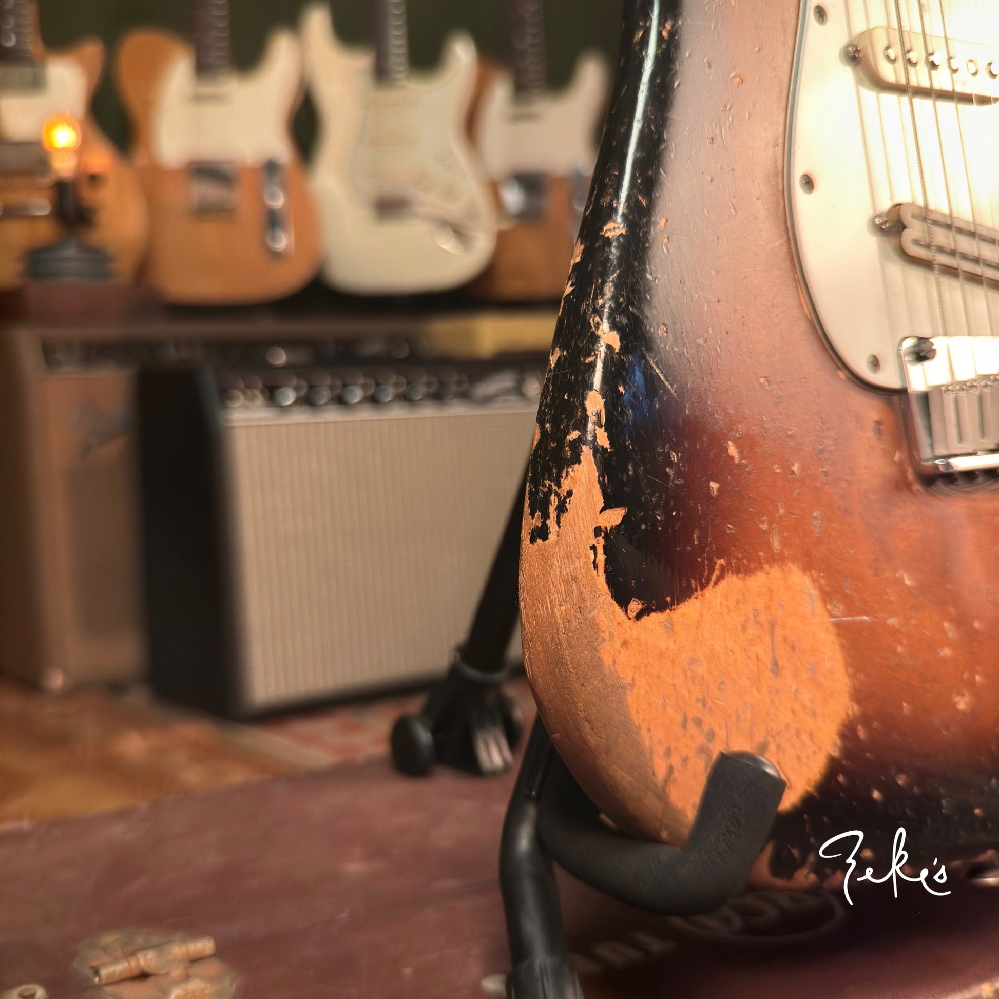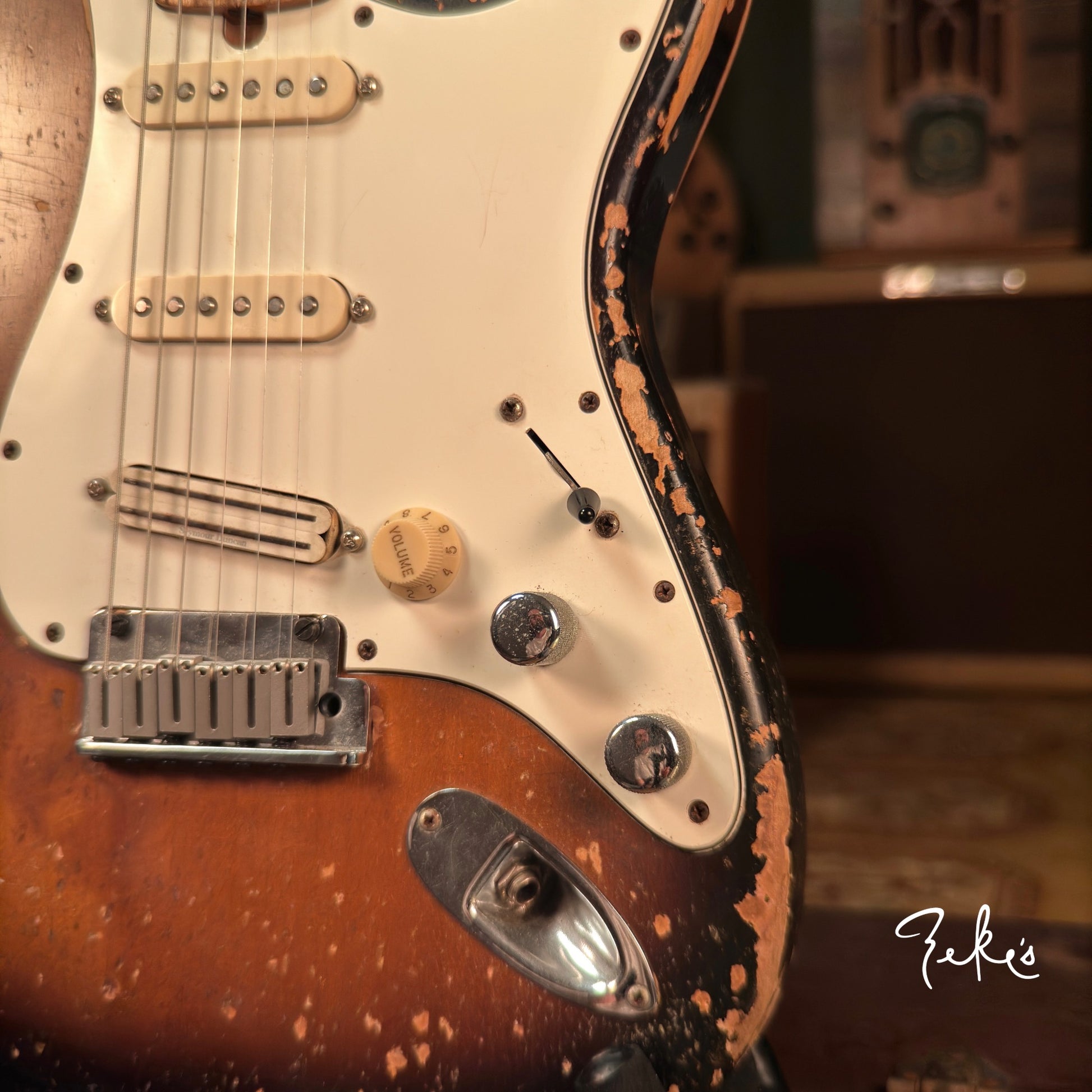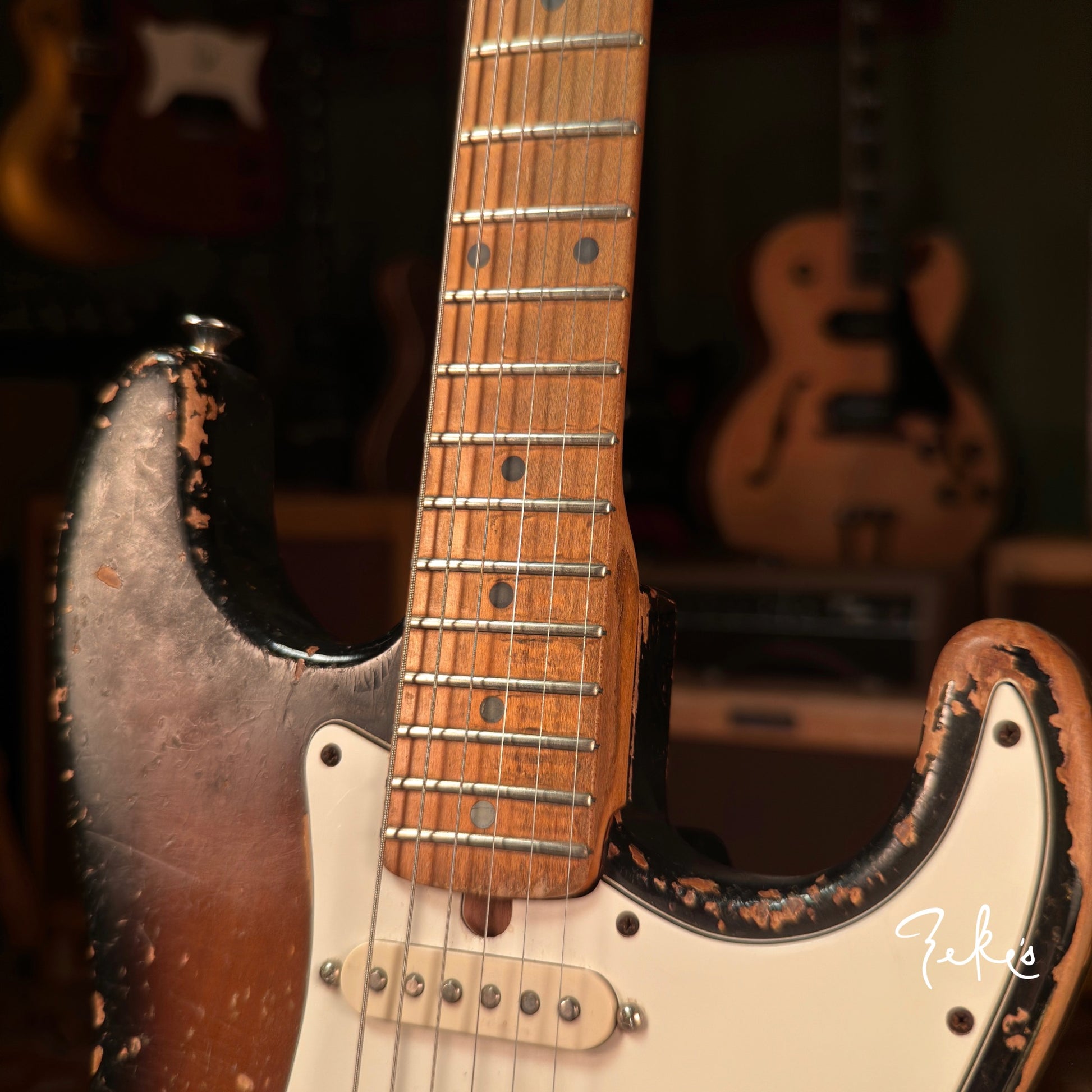 Here we have a S Style guitar built early in the career of world renowned luthier Roger Sadowsky. This one has tons of mojo from many years of honest pro player wear by the great Stuart Ziff. It's obvious this thing has seen many sessions and live performances, including his many years with the band "War." Look em up kids!