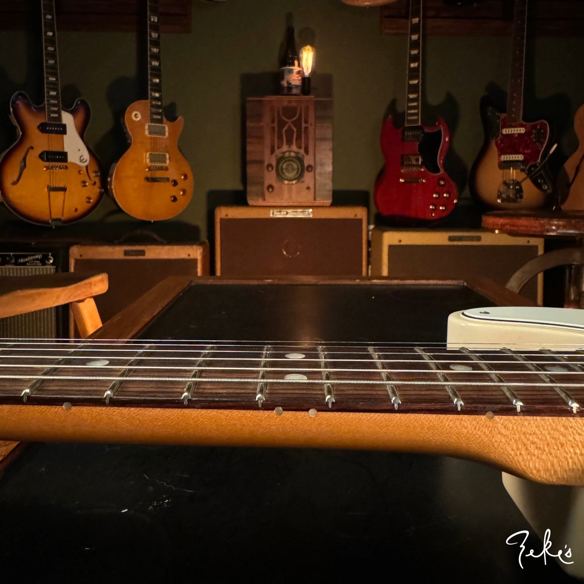 Here we have a really great sounding Fender Telecaster that has been played on the road for 10+ years by the one and only Rick Holmstrom. These AVRI 64's are great guitars and this one might be one of the best we've heard. The pickups Rick chose are a great combination. As you might expect from such a great player. The 2nd position really shines in our opinion and is perfect for those Womack like parts we all love around here. We're happy to have this one for a moment until it finds a new home.