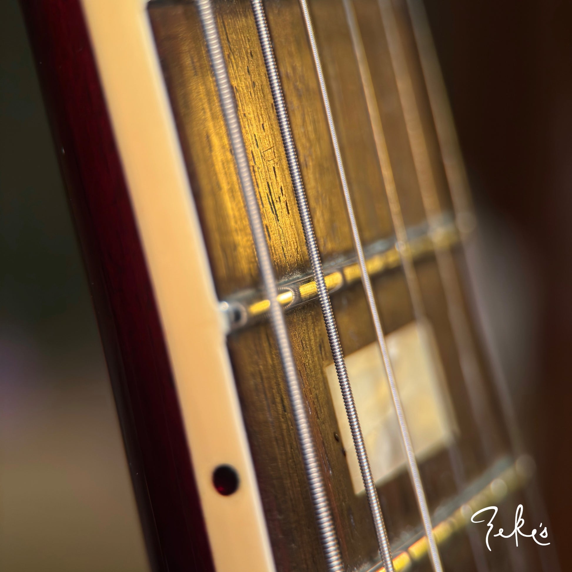 It's had a fairly recent fret level and dressing and plays great with many miles left on them. There's a black spot inside the case from a previous strap lock, originals are back on it. On the back bottom of the body there is sort of smudge on the finish. Perhaps from a leather strap. (see pic 2)