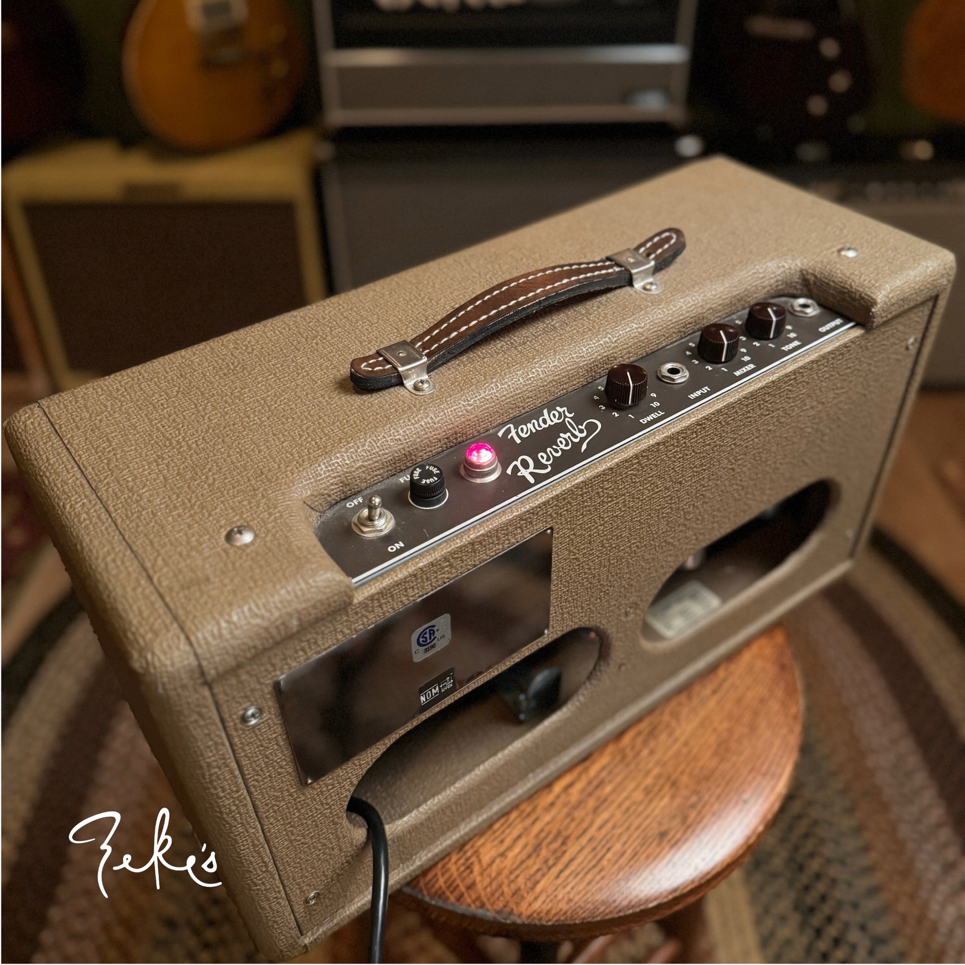 It's tough to beat a real spring reverb. We have heard quite a few of these and this one beats them all. This particular unit was modded for the option to use in a wet/dry rig if you choose. There is a switch on the chassis labeled "NORMAL/100% WET". The power tube socket was upgraded to a "Ruby" labeled ceramic for a solid connection. It has a Black Accutronics & Belton Tank from 2011.