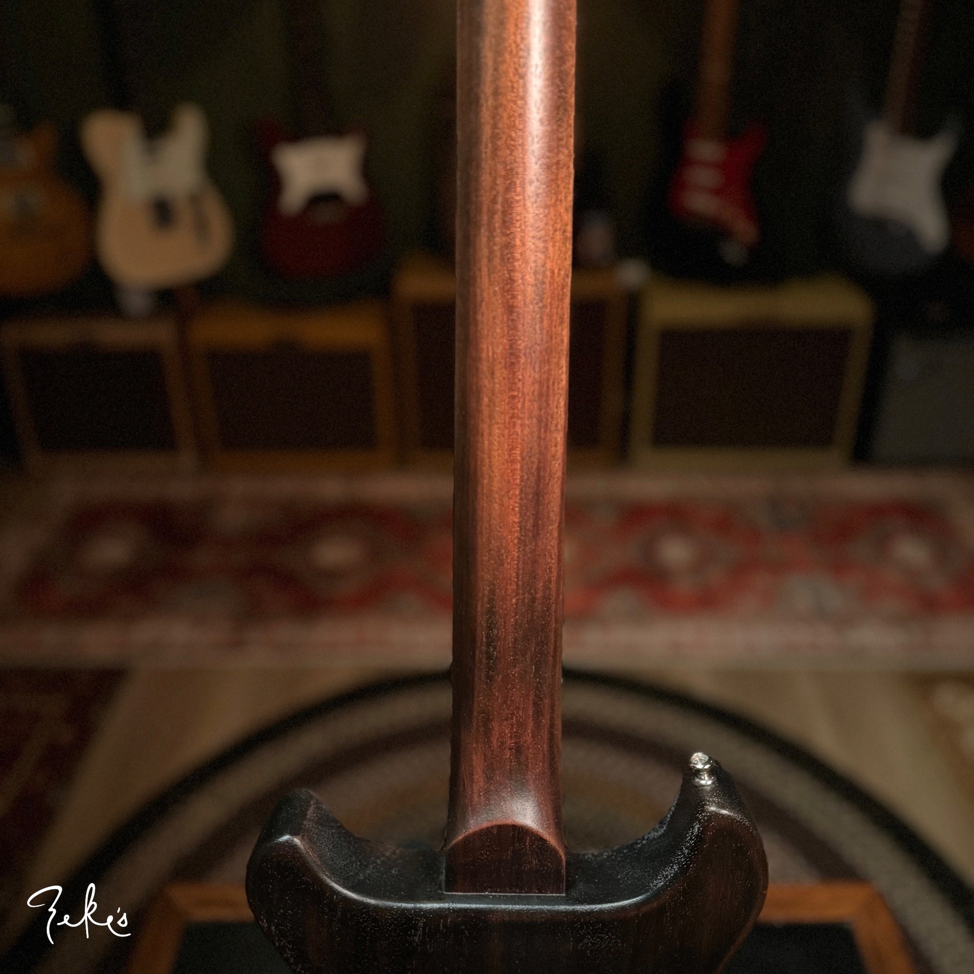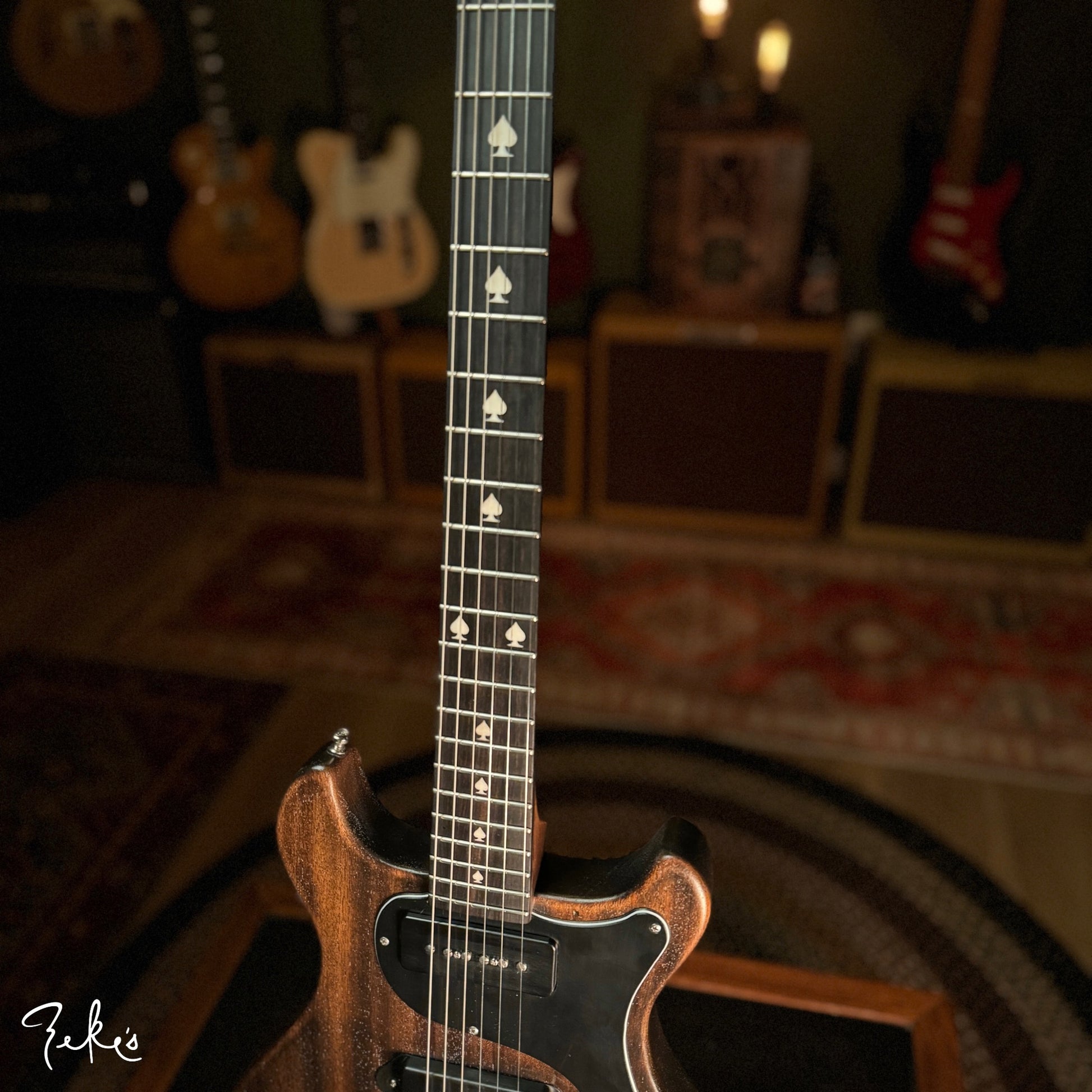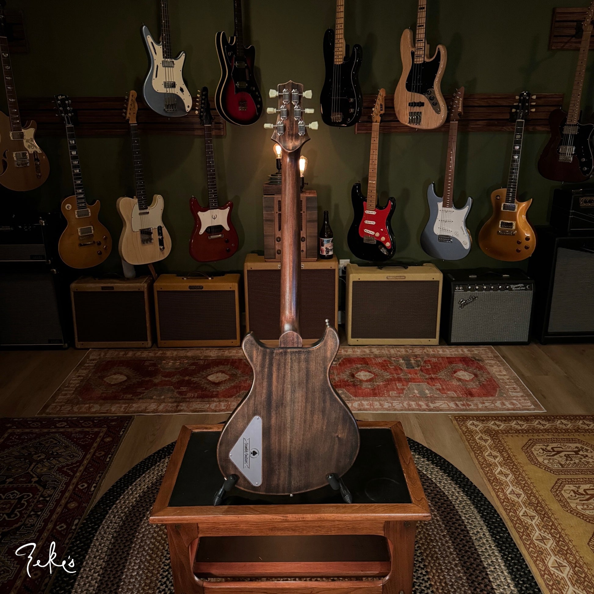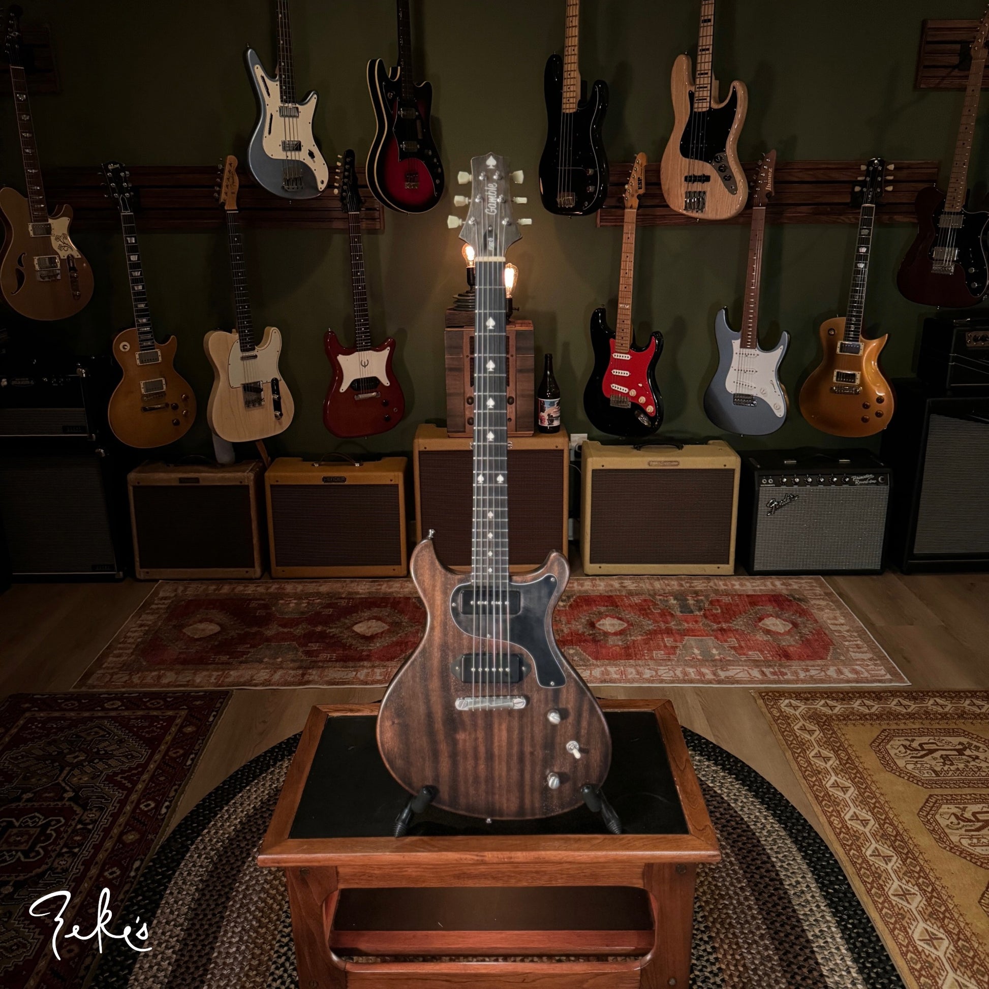 Here we have a well made double cut "Special" type with P90’s finely crafted in Germany. This Gamble made guitar came in to the shop unknown to us but has quickly made friends. Everything is there. The craftsmanship. The extremely well balanced neck to body weight with a lot of acoustic sustain. The pickups have what you’d want from great P90’s. Constant clarity, whether it’s loud and proud or quiet and always touch sensitive.