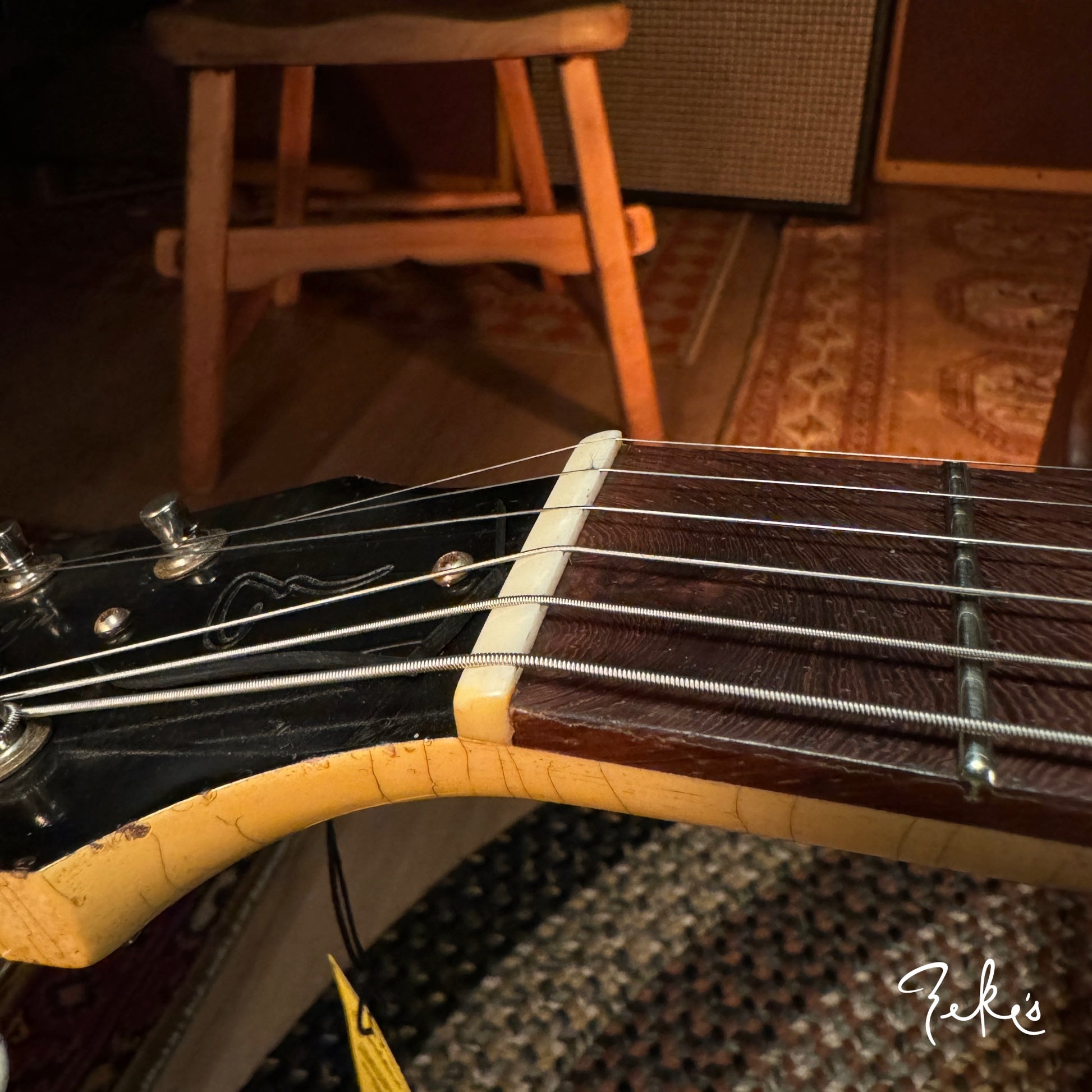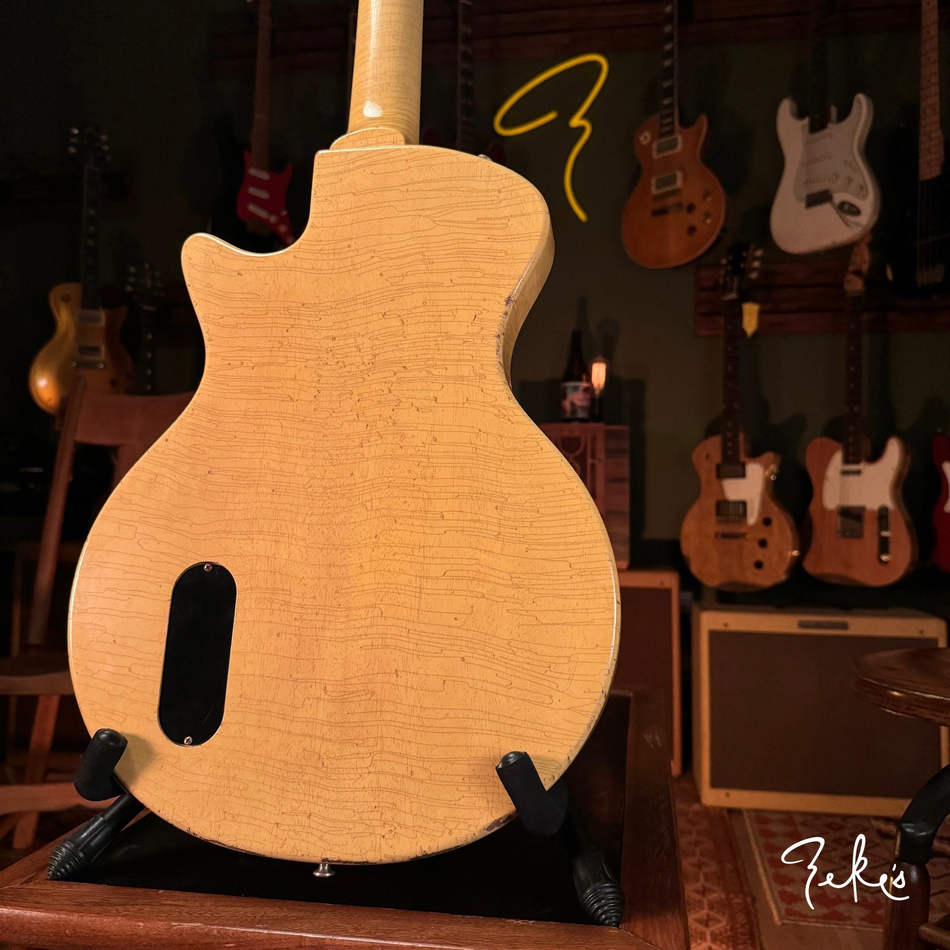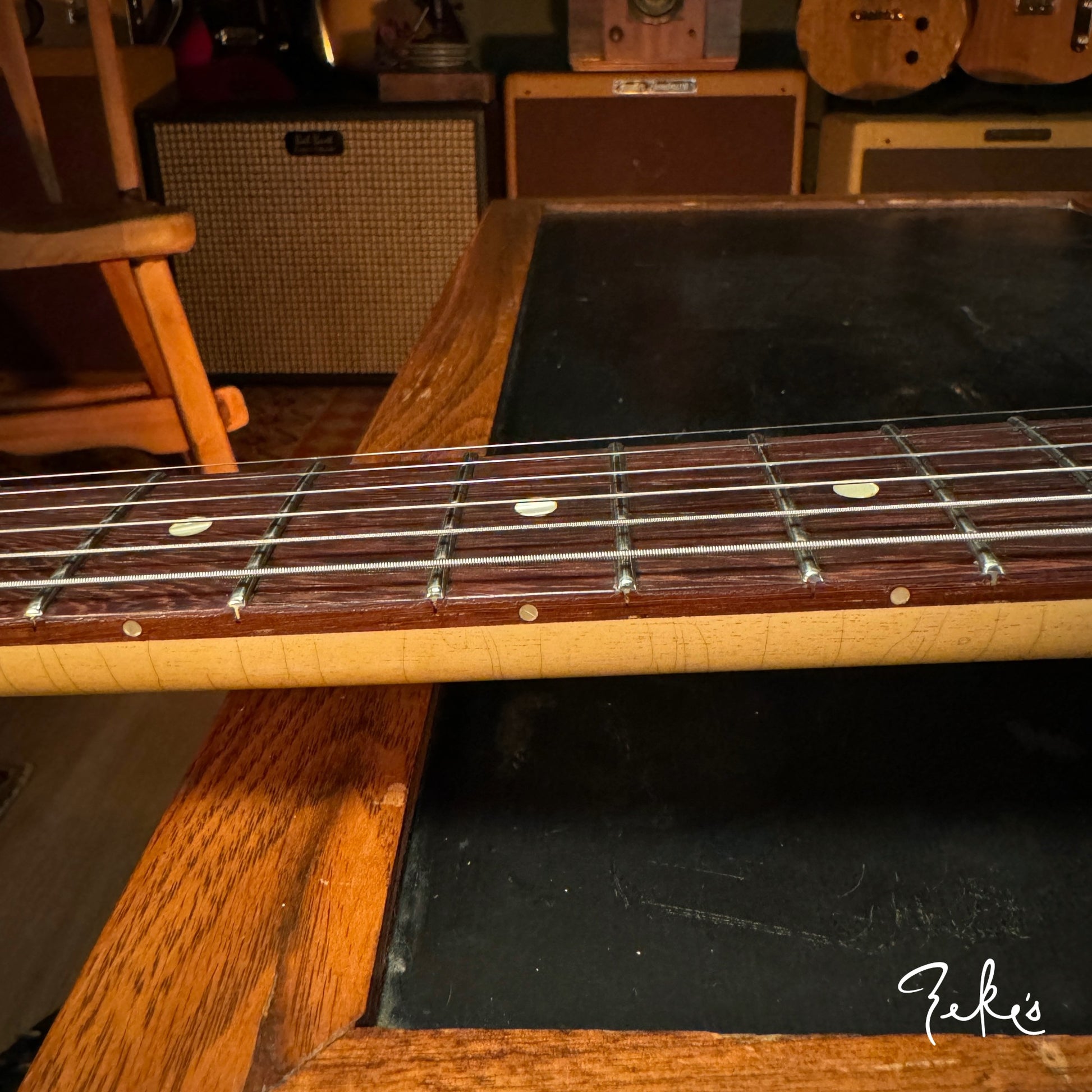 We love his creative take on a classic design and notice the "end of the book" headstock design. Check out the tight grains of the Rosewood fretboard. This guitar acoustically rings like crazy! With Ron Ellis' Classic P-90 picking all that up you can't go wrong. What an inspiring instrument. This one and the others we have/will be receiving from Giordano, we're calling premium builds. With some of our own "Zeke" requests, that Nicholas was more than accommodating with, really make these guitars truly great. Come and check these out if you can or reach out and we will answer any questions you may have.