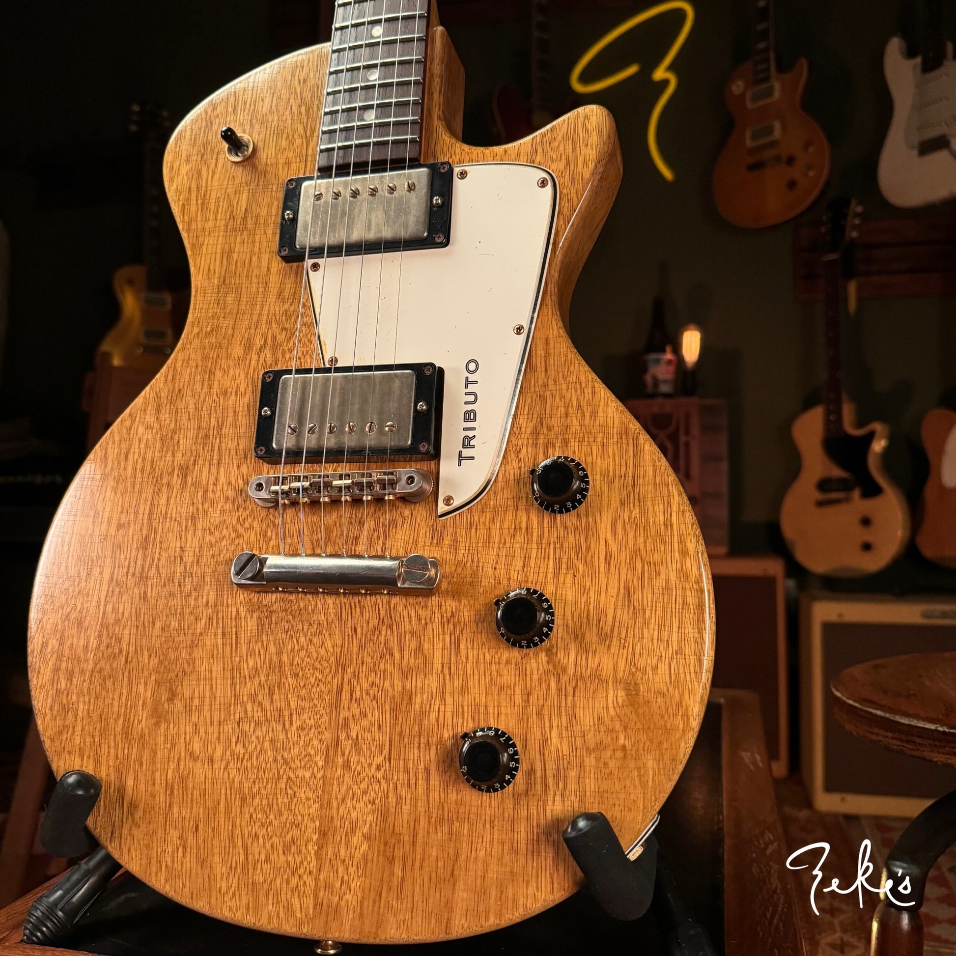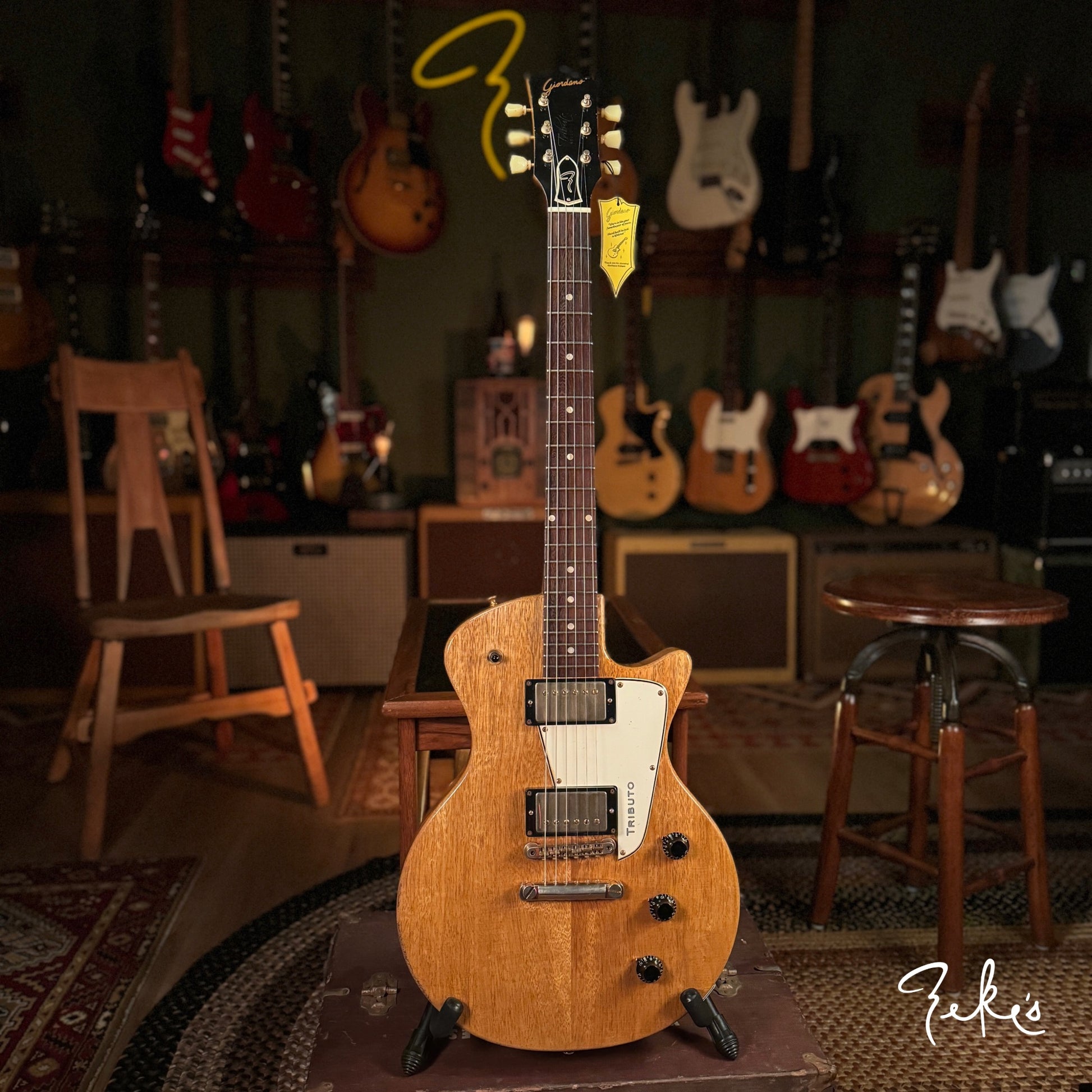 Here we have a handmade Single Cut Style instrument built by Nicholas Giordano; a young man in Reggio Emilia, Italy that is proving to be an incredible guitar builder way beyond his age. We are happy to carry his fantastic guitars. Nicholas has been very accommodating to some of the specifics Zeke's Guitars & Mercantile has requested based on Sam's playing experiences and tastes. As a result, this is one of many more to come from Giordano Guitars with a few "Zeke" requests.