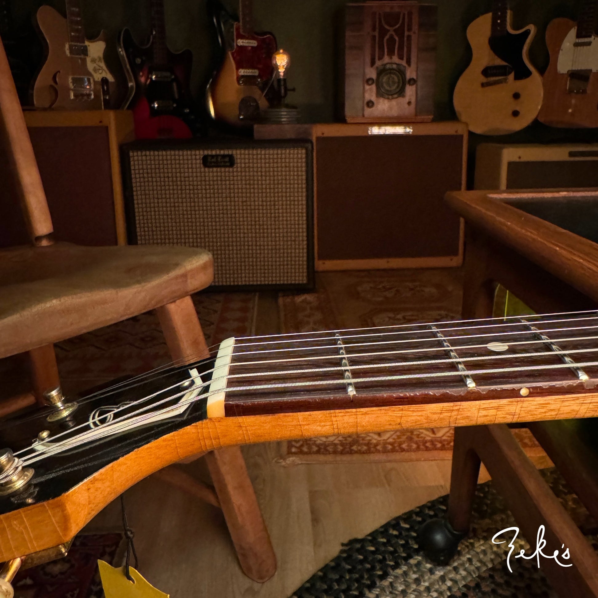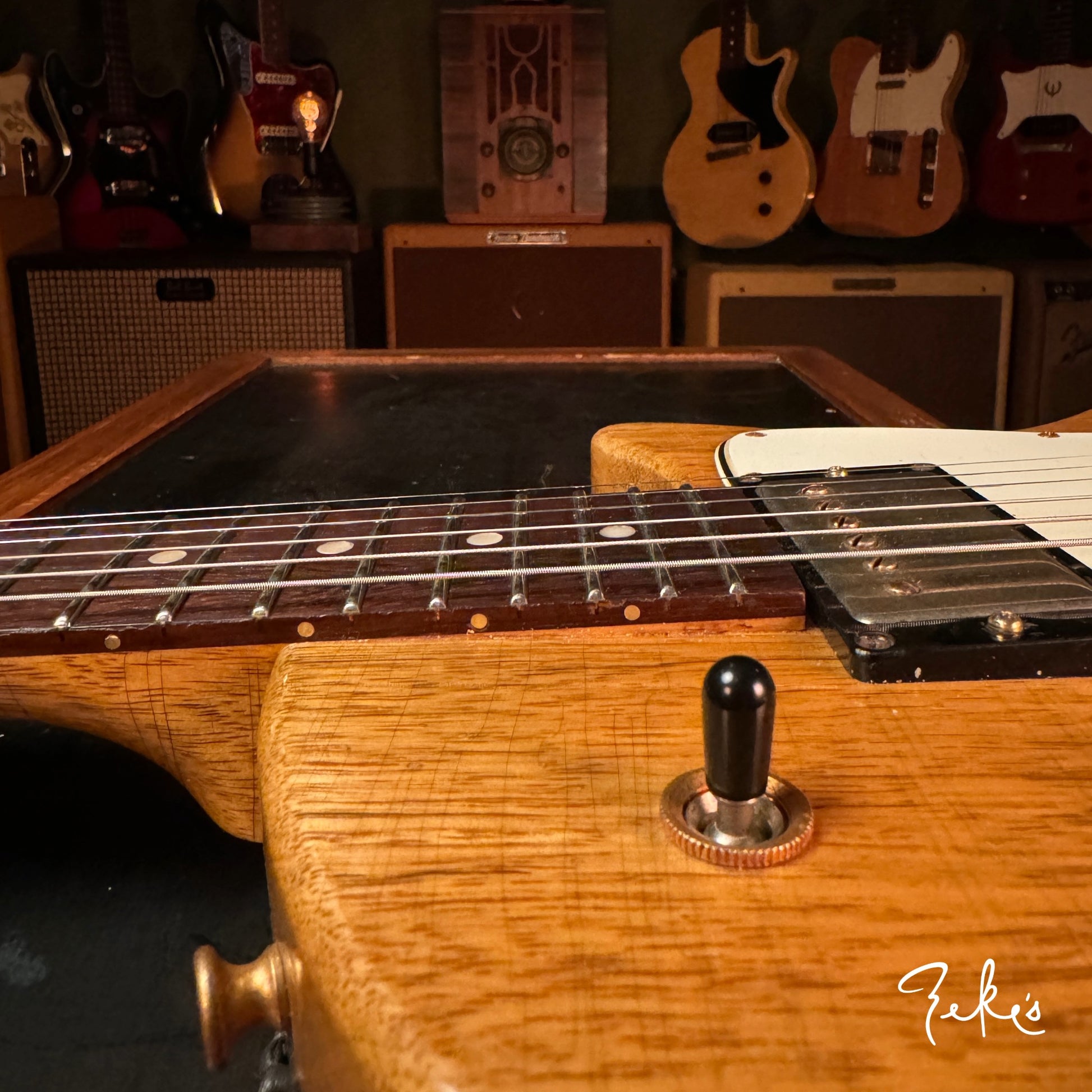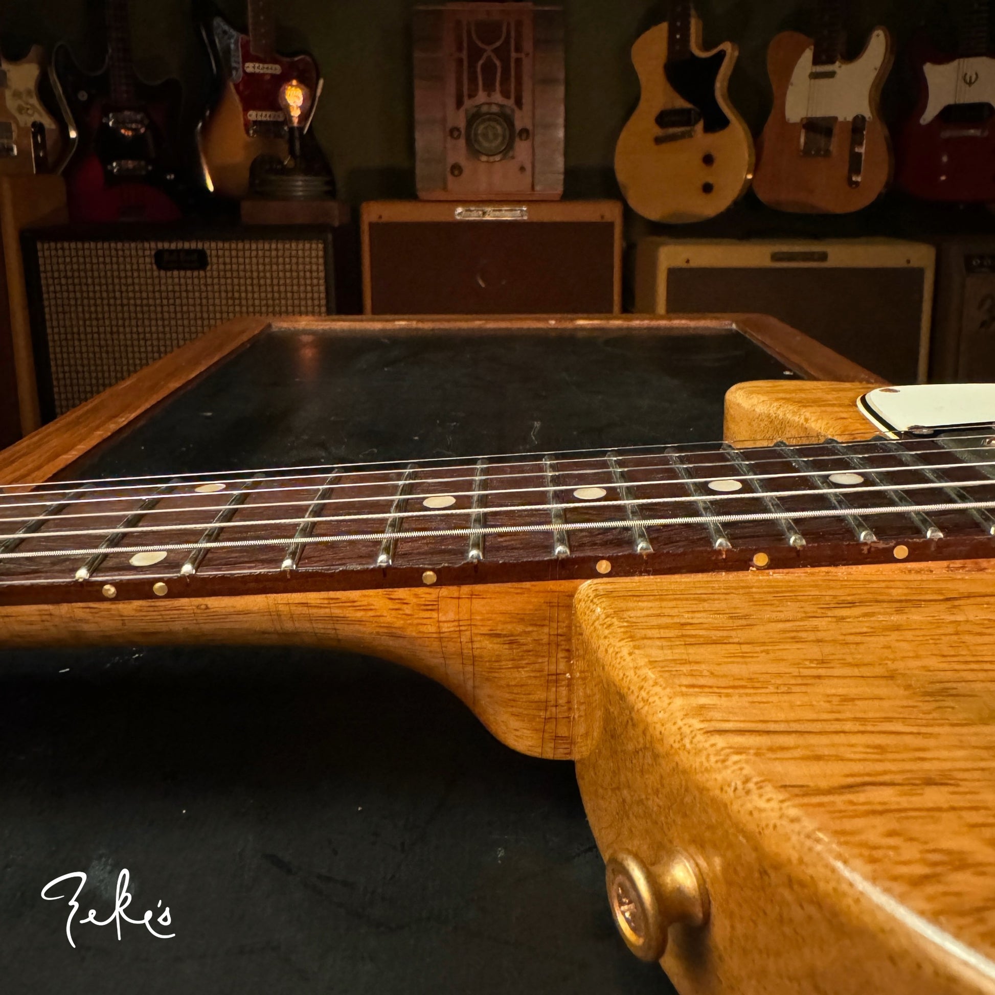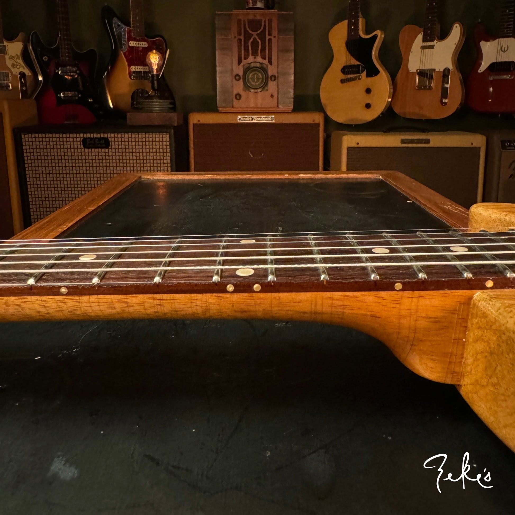 We love his creative take on a classic body shape and the "end of the book" headstock design. Check out the tight grains of the Rosewood fretboard. This guitar acoustically rings like crazy! What an inspiring instrument. This one and the others we have/will be receiving from Giordano, we're calling premium builds. With some of our own "Zeke" requests, that Nicholas was more than accommodating with, really make these guitars truly great. Come and check these out if you can or reach out and we will answer any questions you may have.