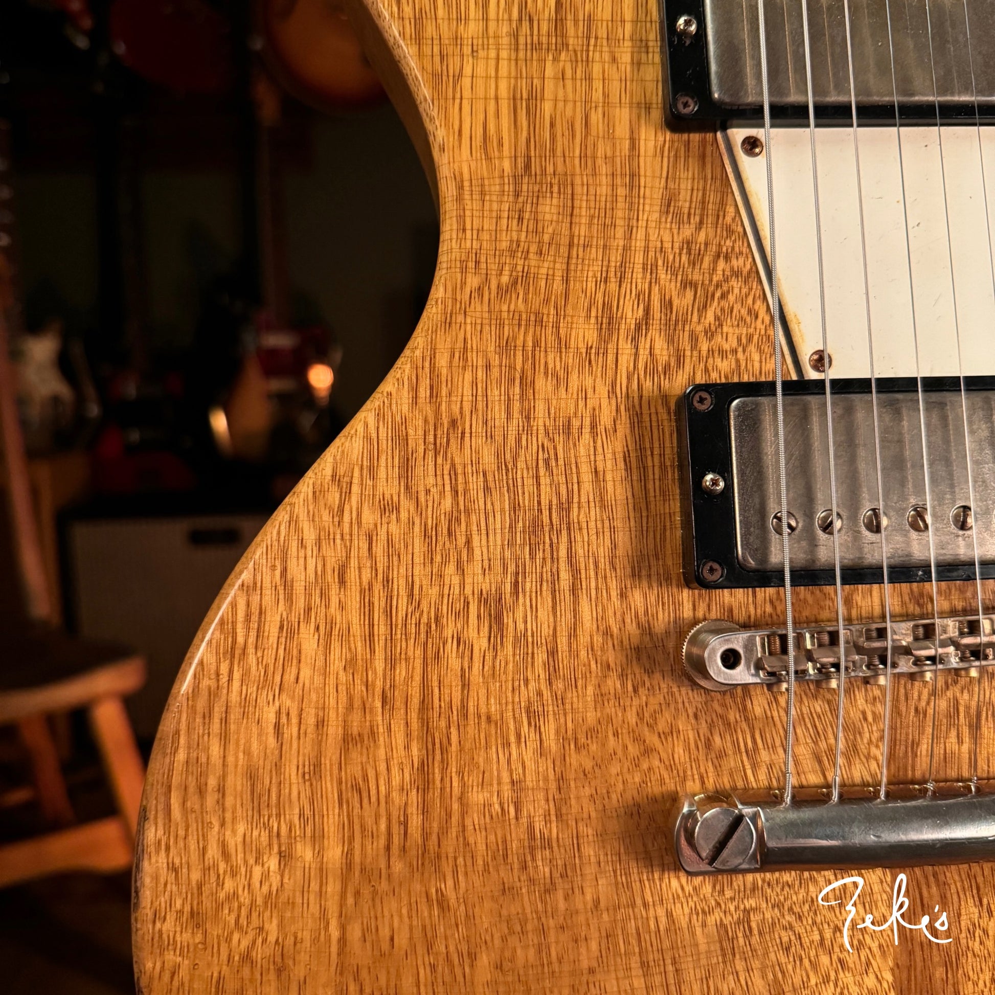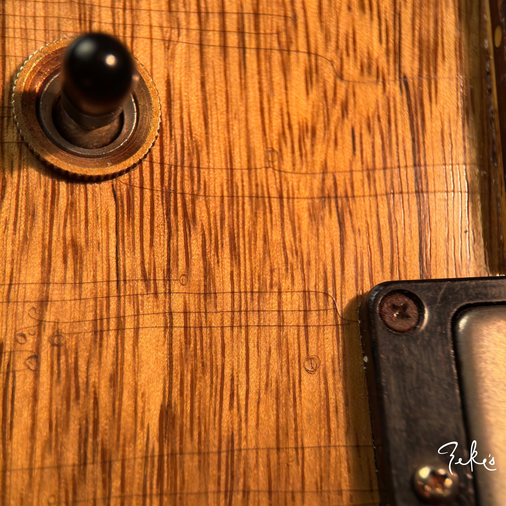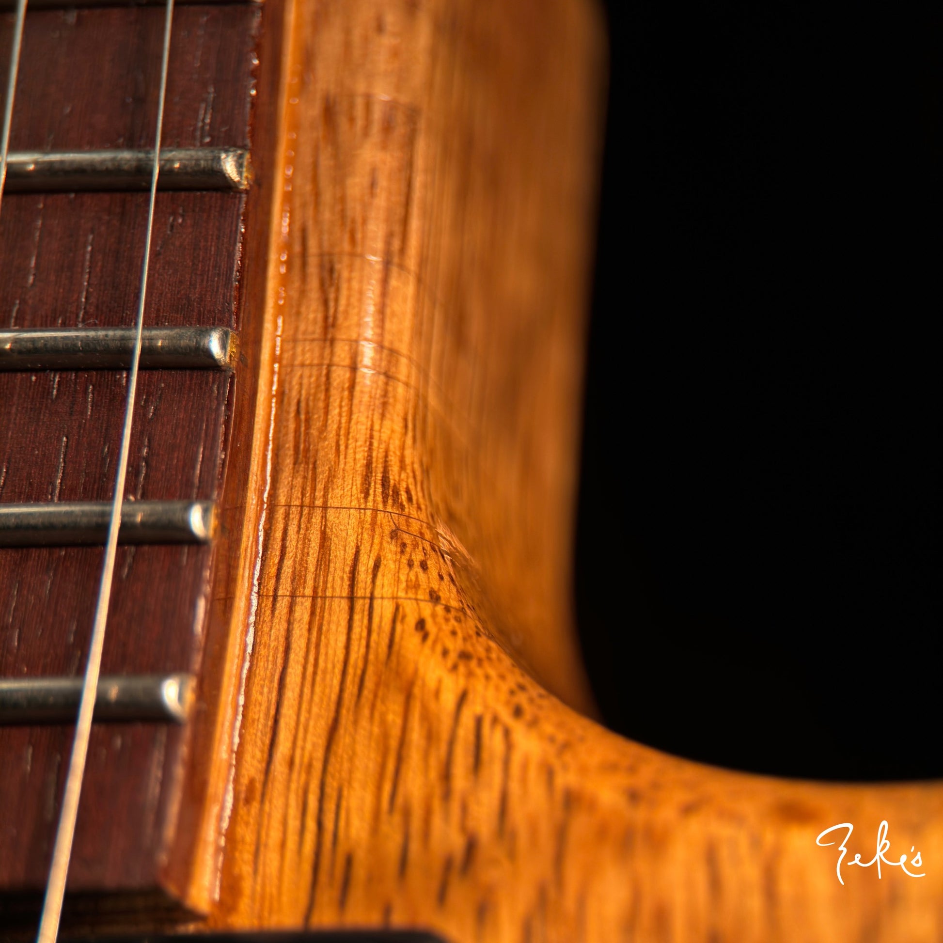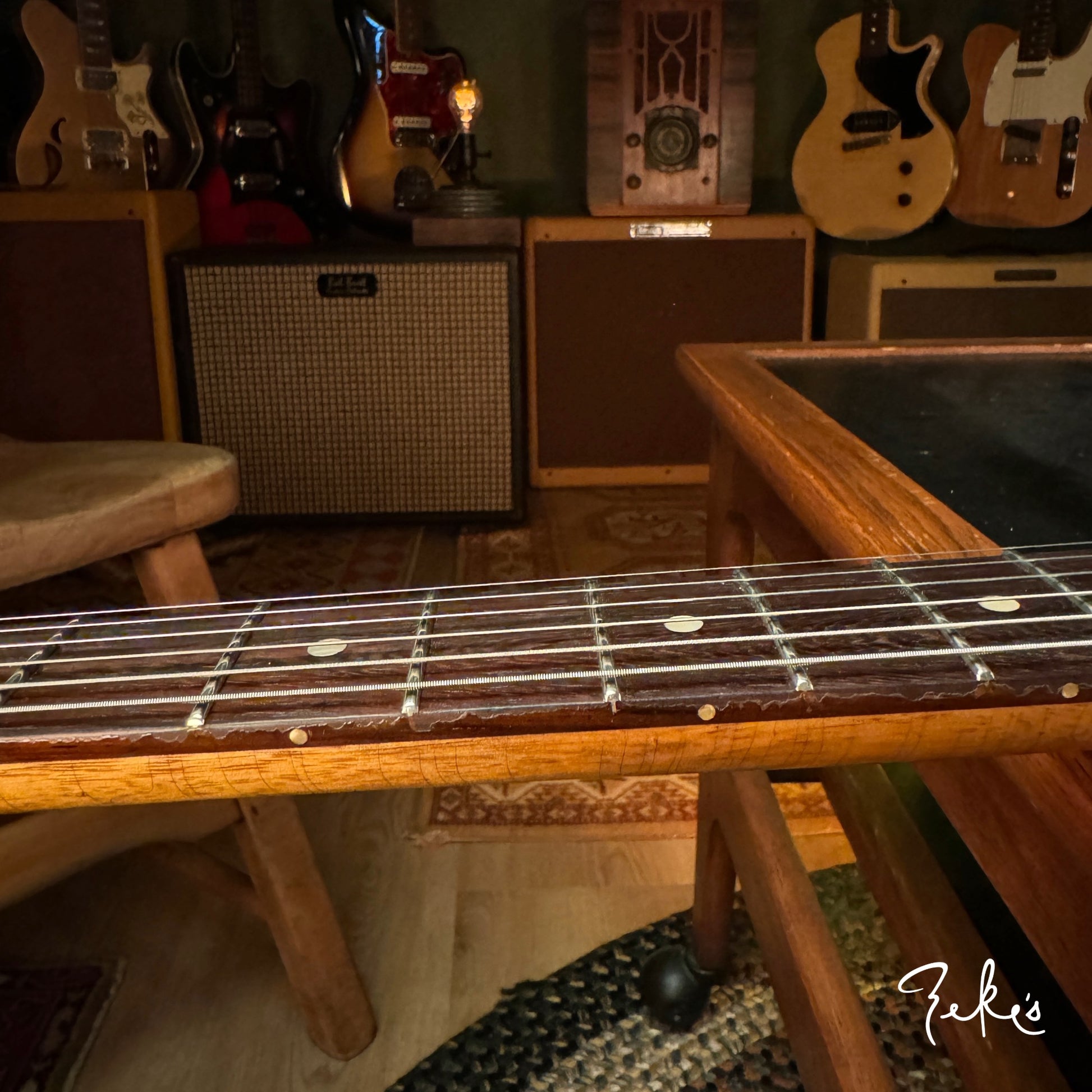 We love his creative take on a classic body shape and the "end of the book" headstock design. Check out the tight grains of the Rosewood fretboard. This guitar acoustically rings like crazy! What an inspiring instrument. This one and the others we have/will be receiving from Giordano, we're calling premium builds. With some of our own "Zeke" requests, that Nicholas was more than accommodating with, really make these guitars truly great. Come and check these out if you can or reach out and we will answer any questions you may have.