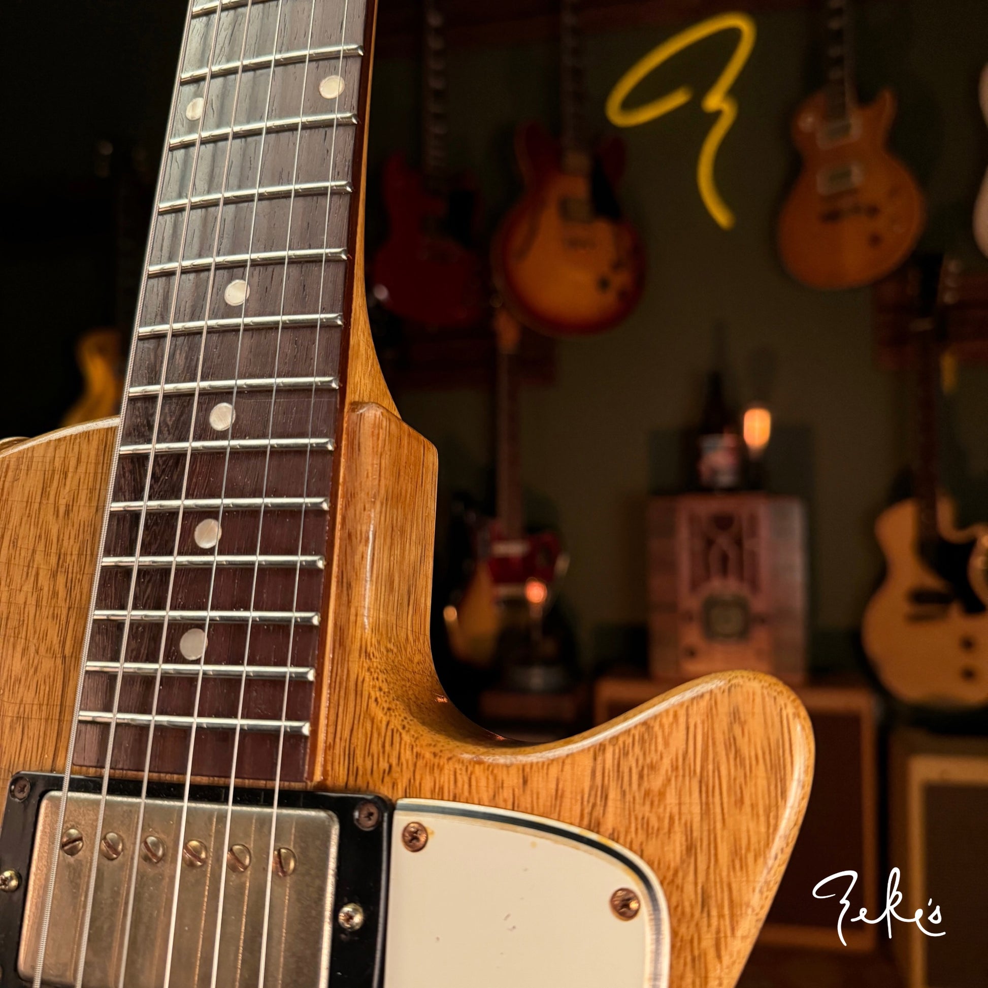 The tones that were created historically with the recipe of korina, rosewood fretboards, PAF type pickups and an ABR type bridge are like none other. This one tips it's hat to that with respect tonally and aesthetically but in a less cumbersome shape. Not to mention the gold hardware and the beautiful stinger. It's got a stinger man!