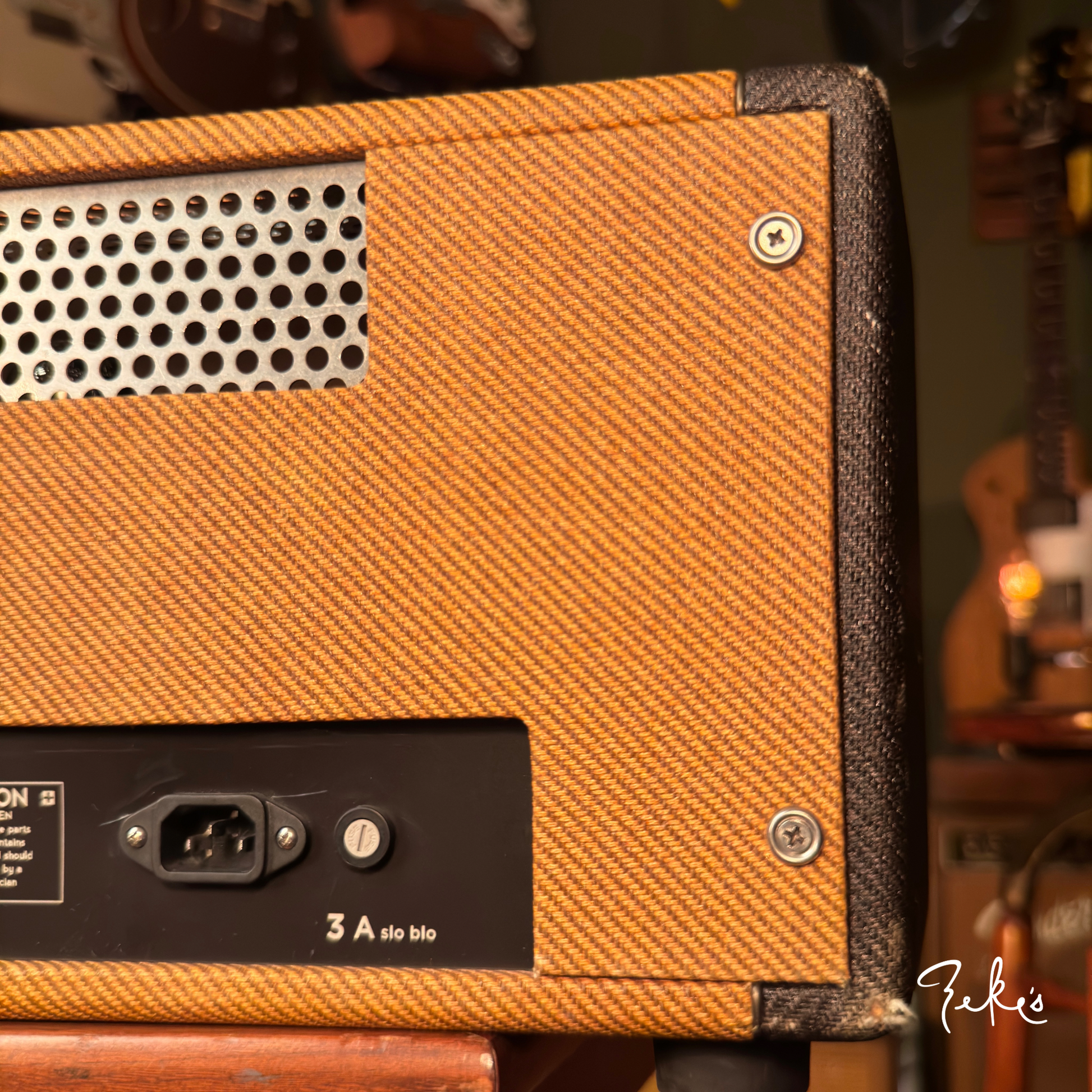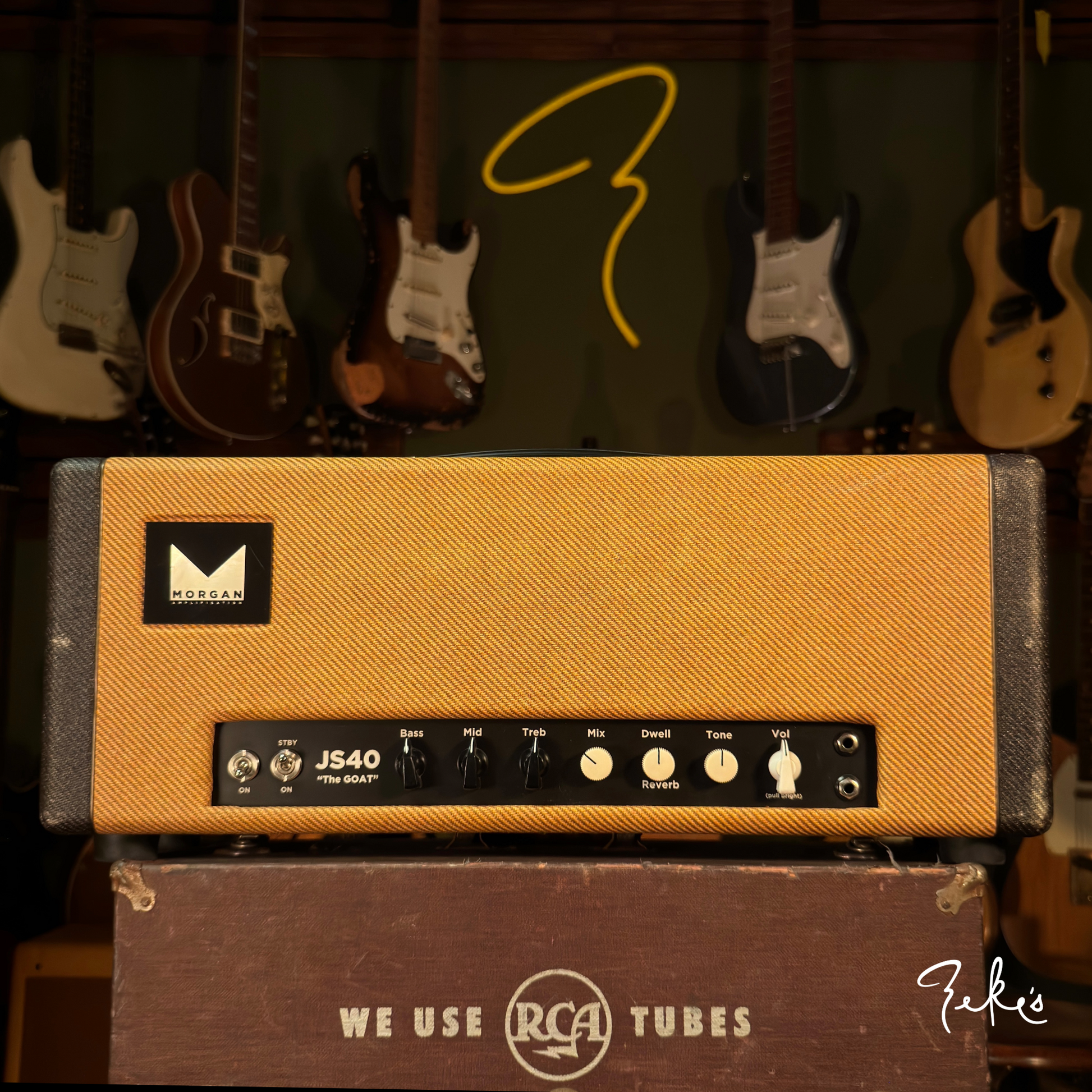 Here we have a really great sounding hand-wired head that was designed for the great Josh Smith by ace amp builder Joe Morgan of Morgan Amplification. I believe the intent was to pay respects to one of the "GOAT" amps that were made in the mid 60's that came in a 4x10 combo that many great players use...I can't remember what they were called...Duper Preverb or something. Anyway, Joe definitely nailed that tone and with more options. One is obviously your cab and impedance choices but another cool addition is a reverb with more controls. This one was modded to also run a 4ohm cab so all your classic F-style 2x cabs and combos are welcomed to join the party.
